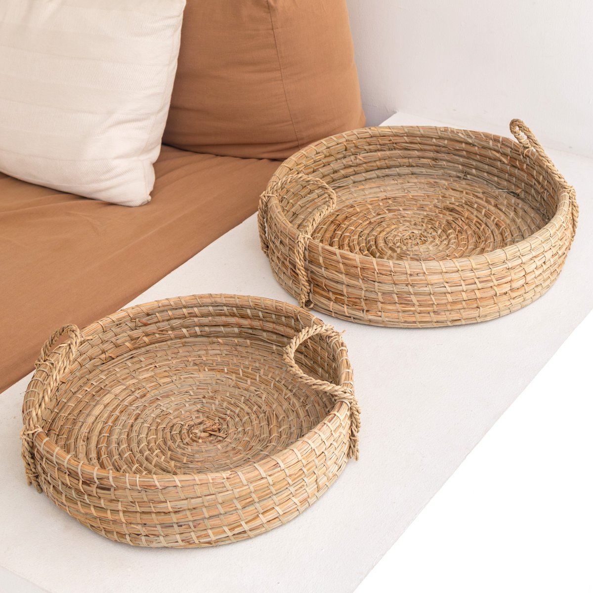 Rundes Tablett aus Seegras PINTU Dekoratives Serviertablett (2 Größen)