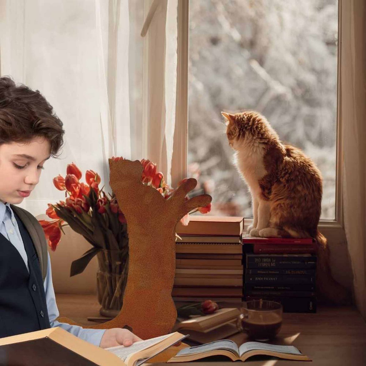 Edelrost Metall Deko Katzenfigur "Feline" als Wohn- und Gartendekoration für Ihr zuhause. Lassen Sie die Rostdeko Figur "Katze Feline" bei sich einziehen und erfreuen sich am Anblick der neugierigen Dekokatze in Edelrost. ► Was sie wohl dort oben auf dem Schrank, der Kommode oder auf dem Baum im Garten entdeckt hat? Maße: Höhe: 40 cm ✓ Breite: 34 cm ✓ runde Bodenplatte: Ø 18 cm ✓ Eigenschaften:In unserer Manufaktur wird die Metall Katzenfigur von kreativen Mitarbeitern von Hand hergestellt. Gefertigt aus Metall entsteht der Vintage Deko Look mit echtem Rost durch die Behandlung mit einem speziellen Edelrost Deko Finish. Stabil angeschweißt steht die Deko Katze auf einer Metall Bodenplatte. Ihre Vorteile bei uns: Wir bieten außergewöhnliche Dekorationen fürs ganze Jahr. Bestellen Sie bequem online oder holen Ihre Dekoartikel vor Ort ab.