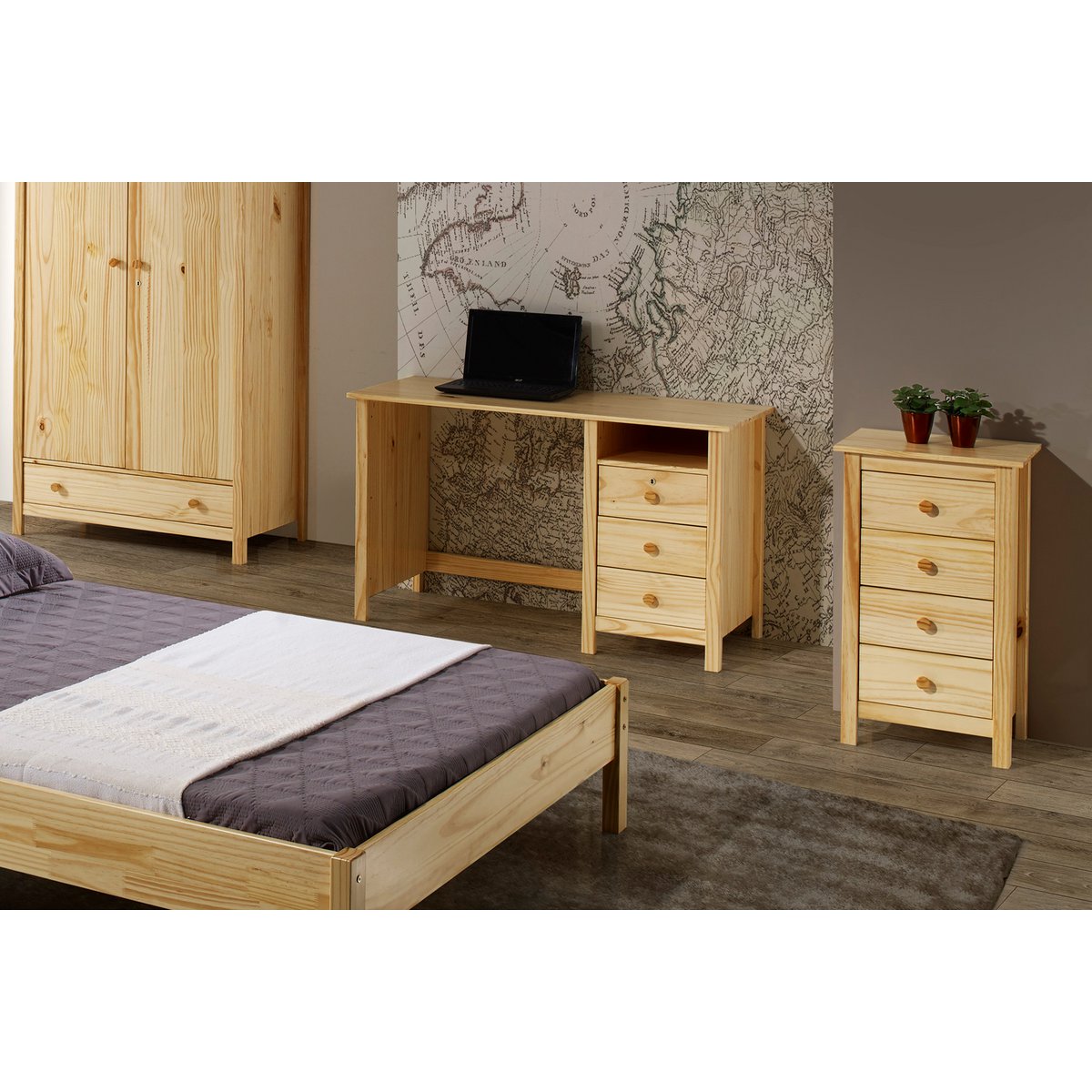 Diese zeitlose und moderne Kommode ist aus massivem Kiefernholz gefertigt und die Oberflächen sind zum Schutz klar lackiert. Praktischer Stauraum befindet sich in den vier Schubladen mit Metallauszug. Ein sehr funktionales Möbelstück, das nicht nur vielseitig verwendbar, sondern auch sehr hochwertig und solide ist. Das naturfarbige Erscheinungsbild mit sanfter Maserung passt harmonisch in viele Wohnstile und wird Ihnen lange Freude bereiten. Diese Kommode ist außerdem vielfältig mit weiteren Modellen der Kollektion kombinierbar. Schubladen mit Metallschienen