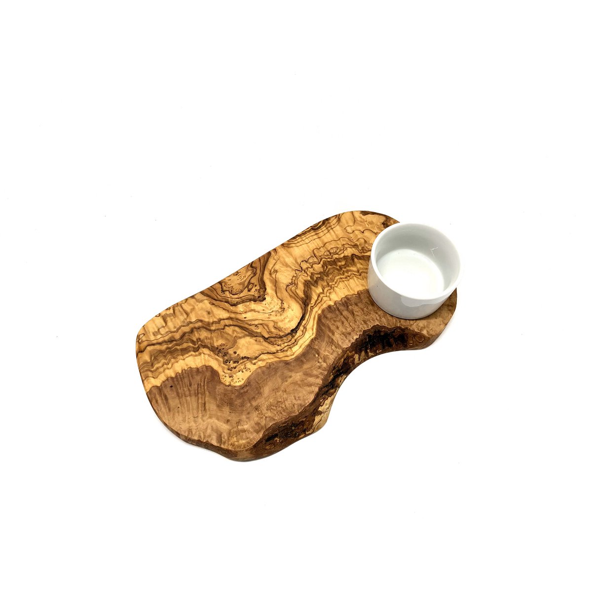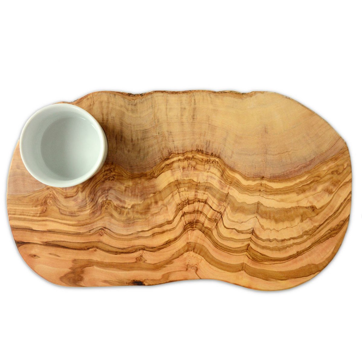Burgerbrett RUSTIKAL (Länge ca. 30 – 34 cm) inkl. Porzellanschale ELEGANT (Ø 8 cm, 5 cm hoch) für Pommes oder andere Dips. Aber nicht nur als Burgerbrett für den Grillabend wunderbar einsetzbar, sondern auch als handliches Schneidebrett oder zum Servieren von Wurst und Käse bestens geeignet. Die Porzellanschale ist mit einem Saugnapf mit dem Brett verbunden und kann so nicht verrutschen.