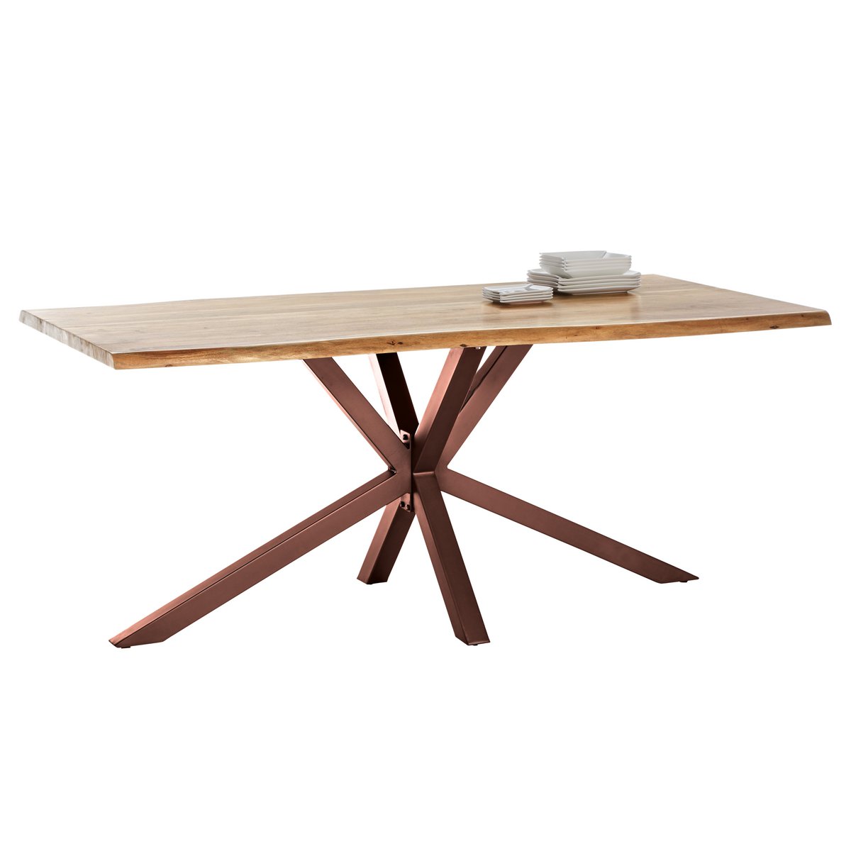 Hier sind Sie richtig, wenn Sie einen Tisch mit Charakter wollen. Dieser hier z.B. wird so leicht nicht  noch einmal zu finden sein. Eine Tischplatte wie gewachsen ist einzigartig wie die Natur eben auch. Dazu das moderne Tischgestell aus Eisen - es baut die Verbindung von Wohnlichkeit und Coolness. Der Essplatz wird so zum Eye-Catcher in Ihren Räumen und Treffpunkt, um schöne Stunden zu verbringen. Plattenstärke 56 mm, Vierkantrohre 6x6 cm.