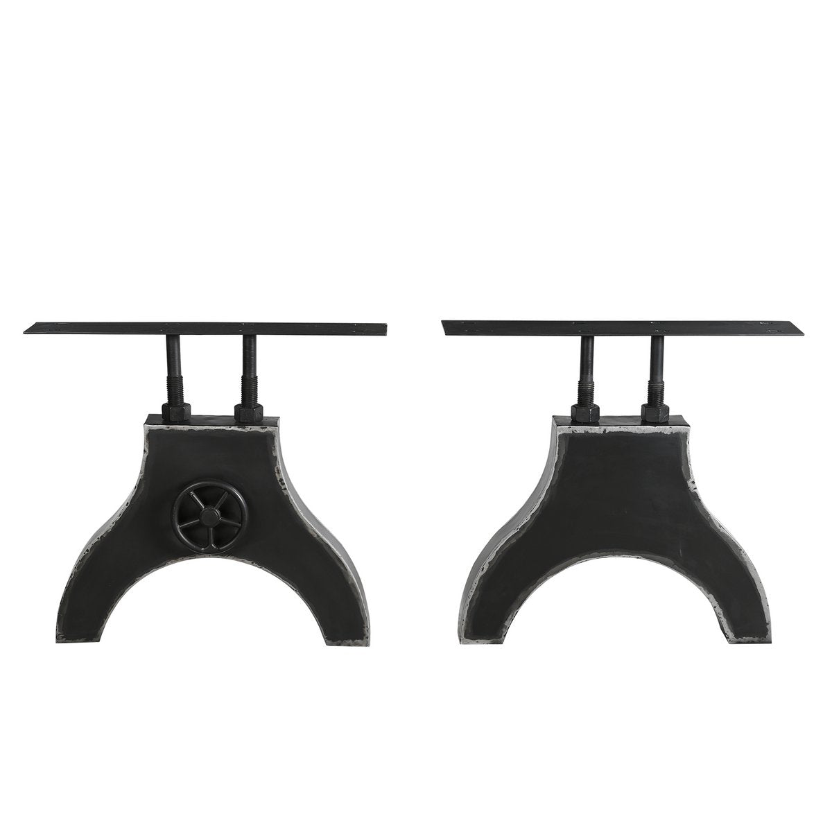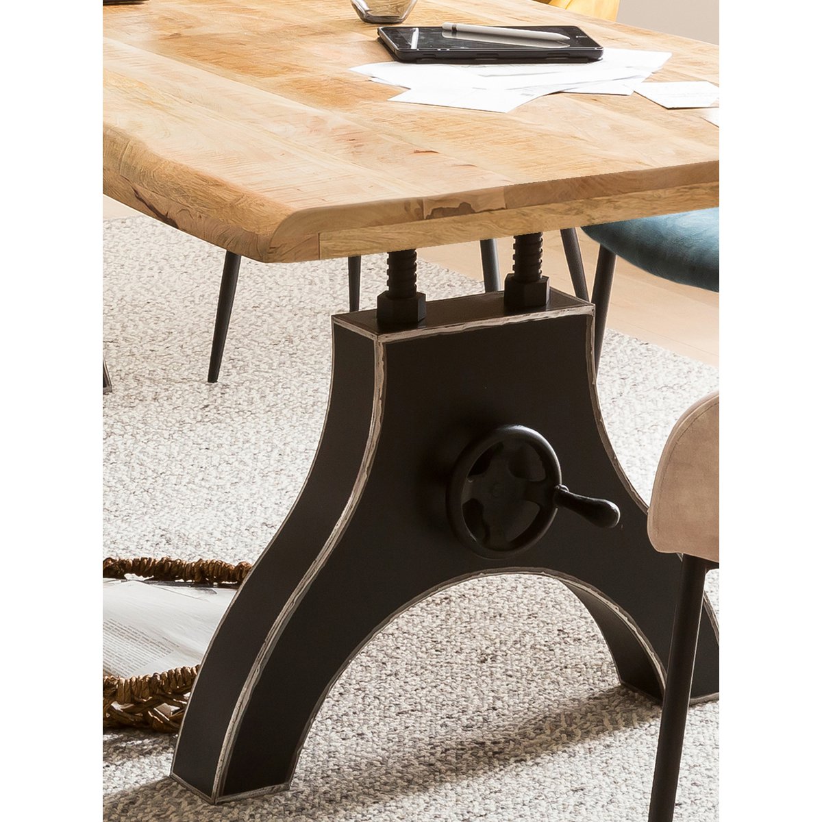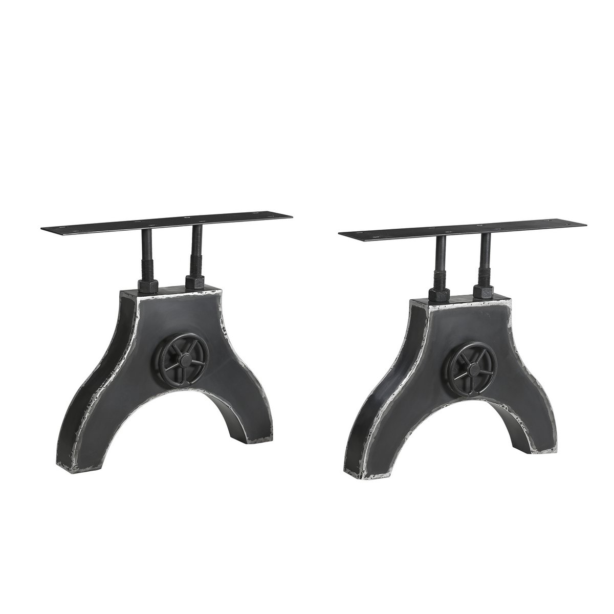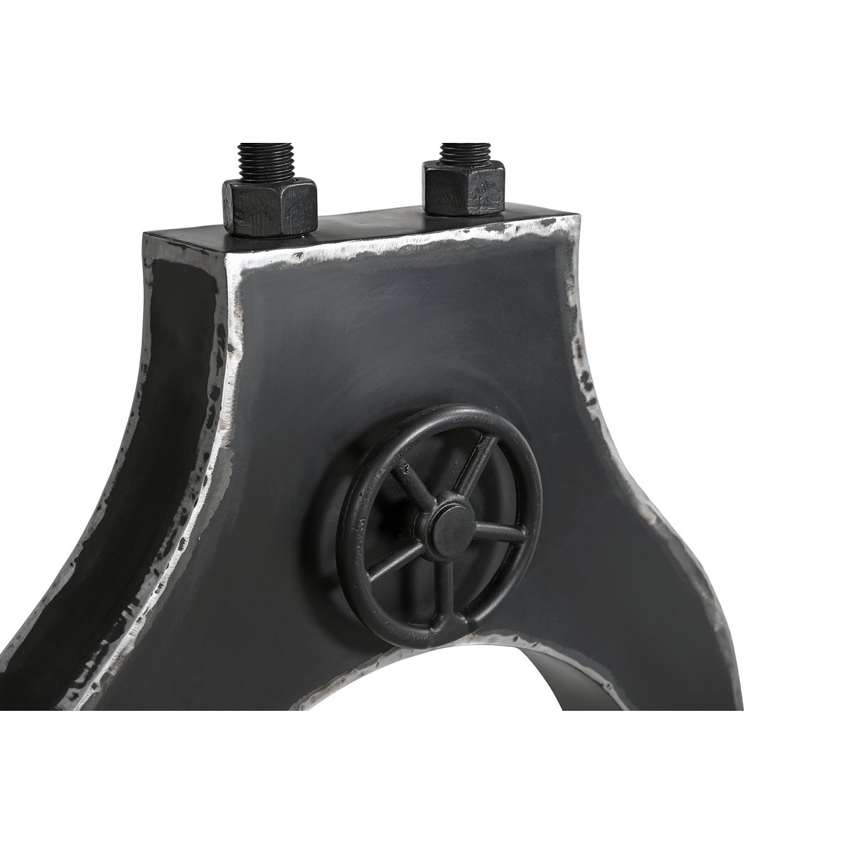 Mit diesem Tischgestell aus schwarzem Metall im Used Look können Sie Ihrer Kreativität freien Lauf lassen. Entweder nutzen Sie das Gestell, um Ihren vorhandenen Tisch umzugestalten oder aber Sie wählen eine passende Platte aus der umfangreichen Auswahl unseres Sortiments. Das Dekor-Kurbelrad ist ein außergewöhnlicher Anblick und ergänzt vor allem Esszimmer im Industrial Style auf ideale Weise. Mit unserem Tischgestell können Sie einen zeitlosen Esstisch zusammenstellen, der das gewissen Etwas mitbringt. Kurbelrad ohne Funktion.