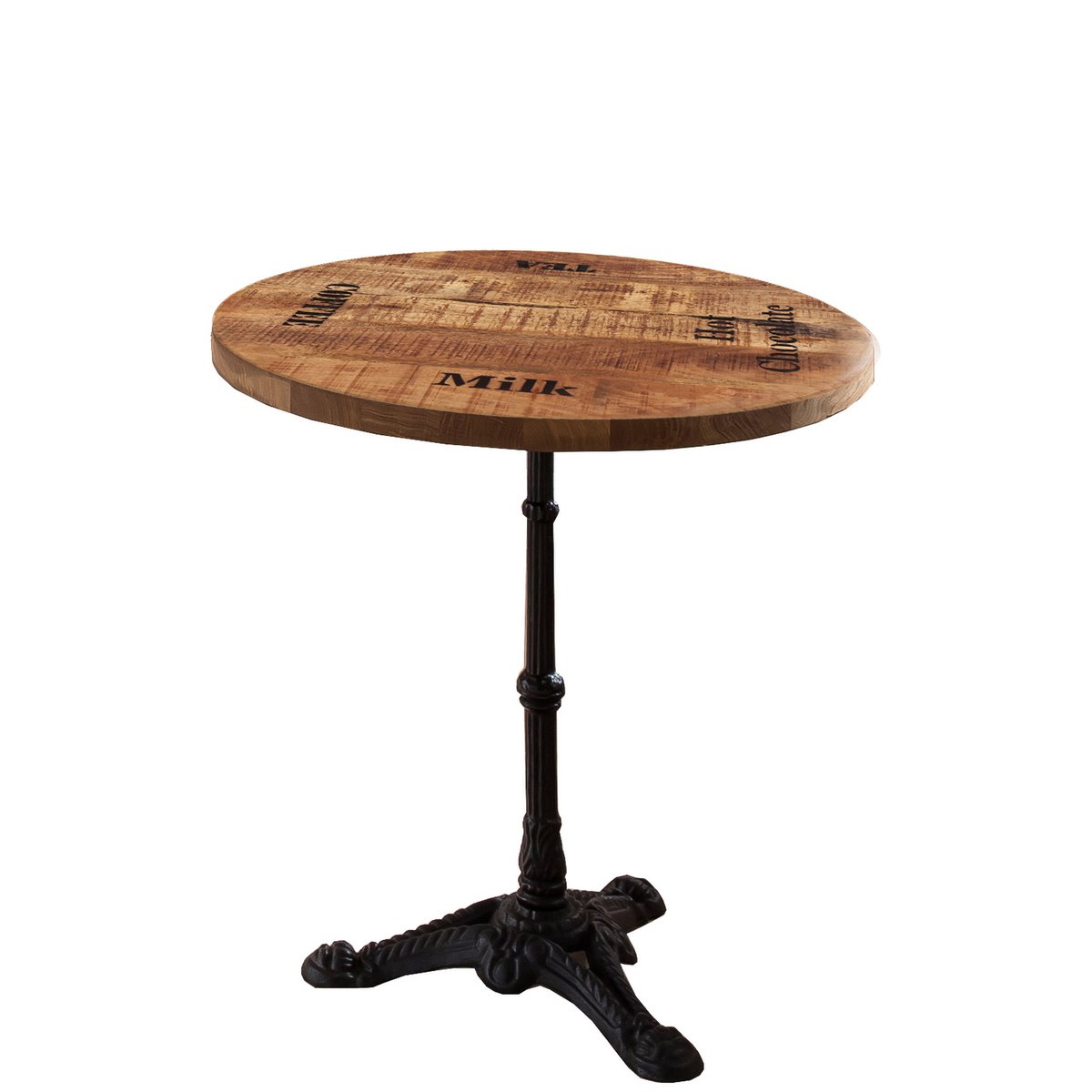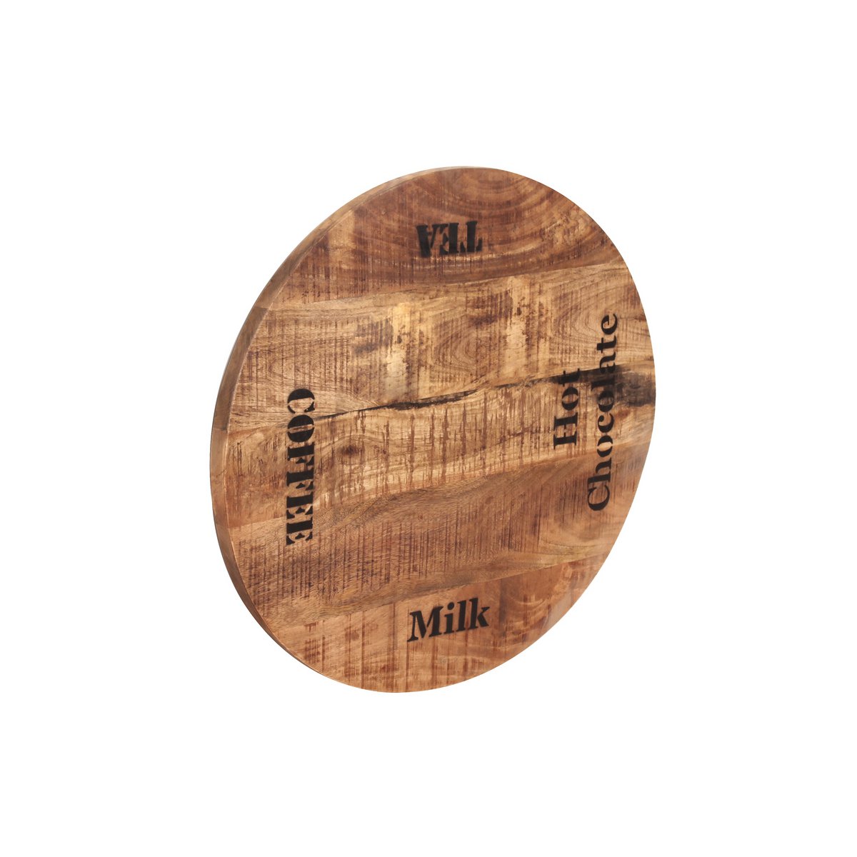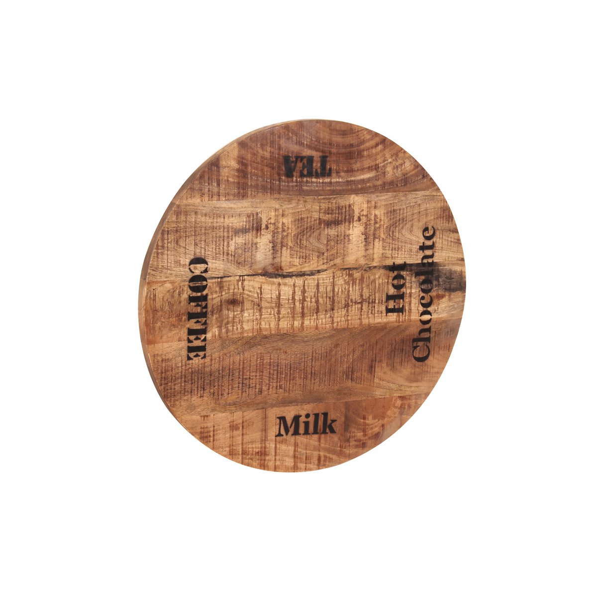 Diese kleine, runde Tischplatte aus massivem Mangoholz mit schwarzen Schriftzügen und Gebrauchsspuren in einer Stärke von 30 mm lässt sich wunderbar als Bistrotisch oder Beistelltisch einsetzen. Dabei kann man sie sowohl mit modernen als auch mit klassischen Tischgestellen kombinieren und erhält jedes Mal eine ganz neue Wirkung. Jede Tischplatte ist einzigartig und Ausdruck von Individualität und Natürlichkeit. Und mit ein bisschen Pflege und Achtsamkeit werden Sie einen Freund fürs Leben haben. Mit kontrastreichen Schriftzügen.
