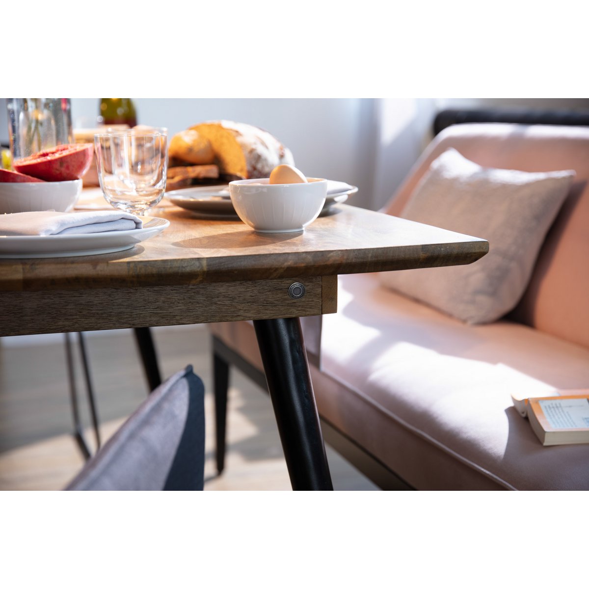 Der hochwertige Esstisch »T-SOHO TABLE LARGE« von TOM TAILOR bietet Platz für gemütliches Zusammensitzen mit Freunden oder der Familie. Die Tischplatte ist aus FSC®ertifiziertem Mangoholz hergestellt und in einem großzügigen Maß gefertigt - so ist für viel Platz am Tisch gesorgt. Optische Highlights sind die abgeschrägten Kanten der Platte und die lackierten Metallbeine. Sie verleihen dem Esszimmermöbel einen modernen Stil. Durch die schlichten Konturen kann er dennoch mit vielen Einrichtungsstilen kombiniert werden und einen stylischen Akzent setzen. Der Esstisch »T-SOHO TABLE LARGE« von TOM TAILOR überzeugt durch eine hochwertige Verarbeitung und komplettiert dadurch lang anhaltend das Interieur des Essbereichs. Neben stylischer Mode entwickelt TOM TAILOR seit einigen Jahren auch Möbel im Premium Segment. Dabei setzt die Lifestyle Marke auf einen jungen und erfrischenden Stil: Das vielseitige Möbelsortiment hat für jeden Raum etwas zu bieten und überzeugt mit lässigem, urbanem Design. Jedes Stück des Hamburger Unternehmens zeichnet sich durch viel Liebe zum Detail und die hochwertige Verarbeitung aus. Die Gestaltung, insbesondere die Kombinationen von Materialien, Formen und Farben sind inspiriert von der aktuellen Mode. Immer am Puls der Zeit: Mit Möbeln von TOM TAILOR gelingt es, sich genauso modern einzurichten, wie zu kleiden. Plattenstärke 25 mm, angeschrägte Kante, schweizer Kante, Zarge 50 mm.
