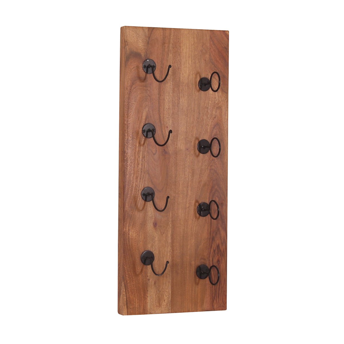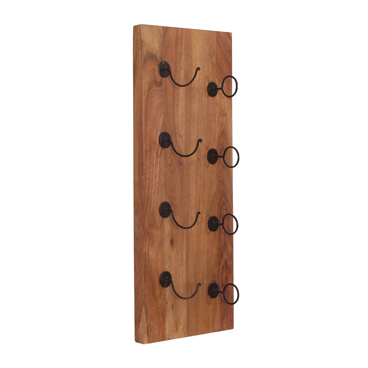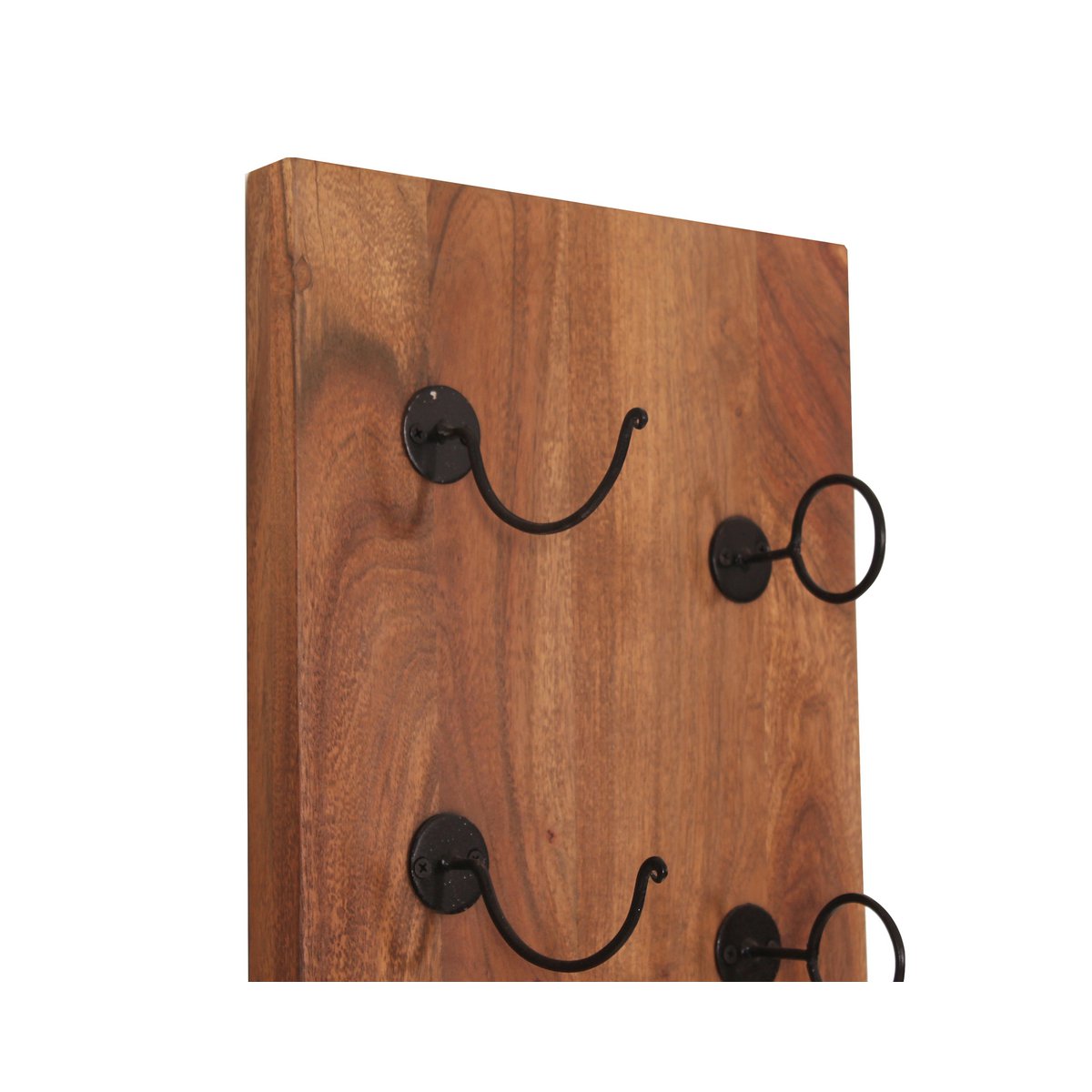 Mit diesem praktischen Weinregal können Sie 4 Weinflaschen gleichzeitig platzsparend und dekorativ an der Wand unterbringen. Die Kombination von mehreren Wandregalen erhöht die Kapazität und setzt der kreativen und individuellen Anordnung keine Grenzen. Das warme Akazienholz und die antikschwarzen Metallhaken in Kombination mit edlen Weinflaschen zaubern ein stilvolles und gemütliches Flair. 4 mm starkes Holz.