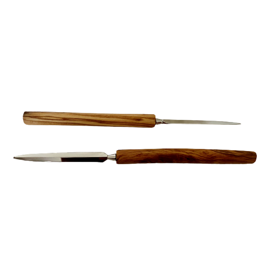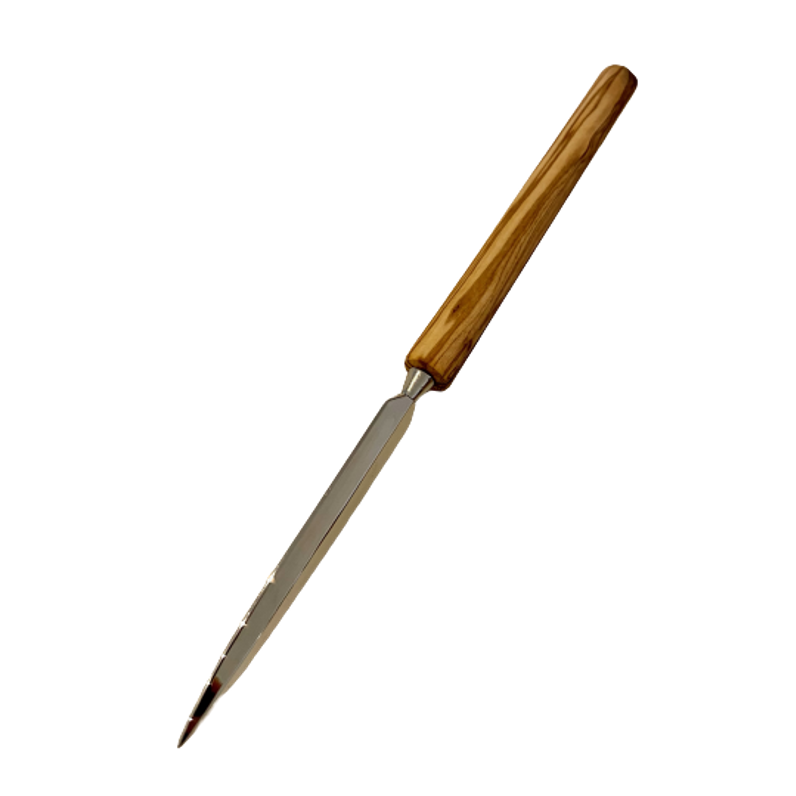 Luxuriöser Brieföffner mit Griff aus Olivenholz. Ein hochwertiges Accessoire auf dem Schreibtisch. Länge ca. 23 cm, wobei der Griff aus Olivenholz eine Länge von ca. 15 cm hat und damit extrem gut in der Hand liegt.