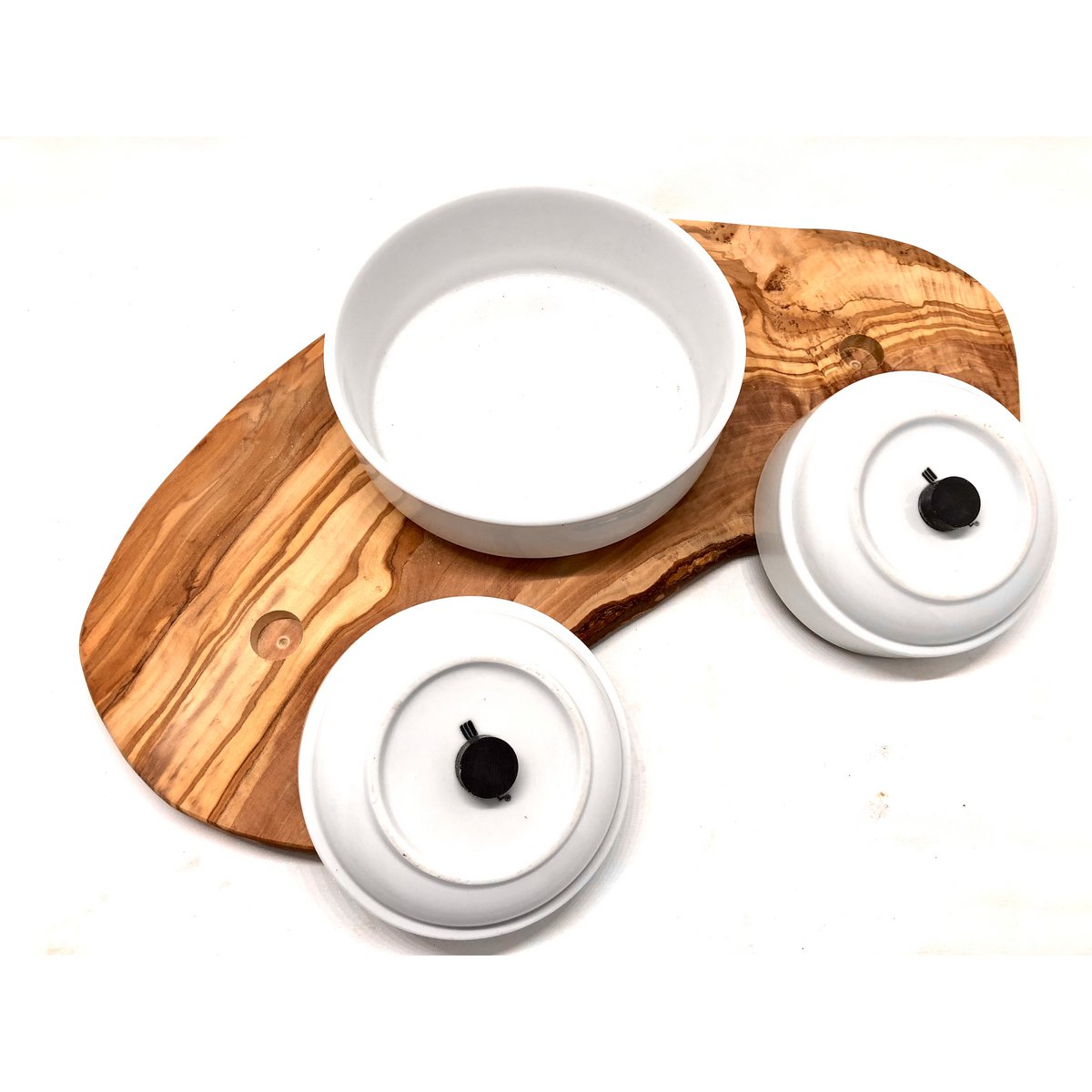 – Leichte Reinigung. Der Sockel aus Olivenholz ist hart und unempfindlich. Die Schalen aus Porzellan sind pflegeleicht und herausnehmbar. Die Futterschüsseln sollten per Hand unter fließend Wasser gereinigt werden.