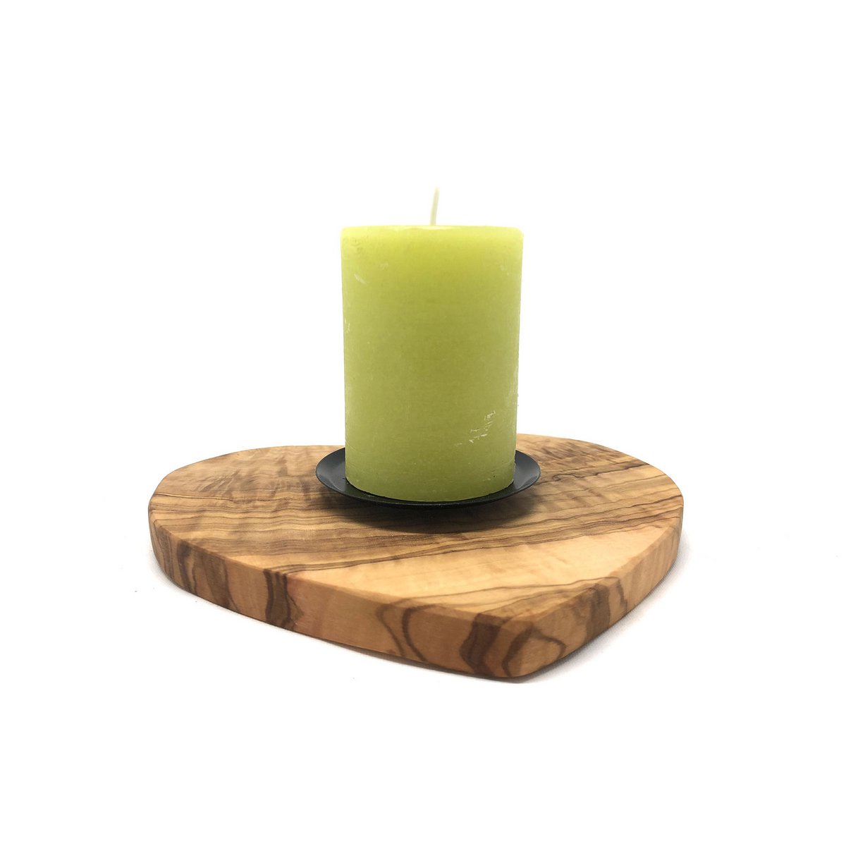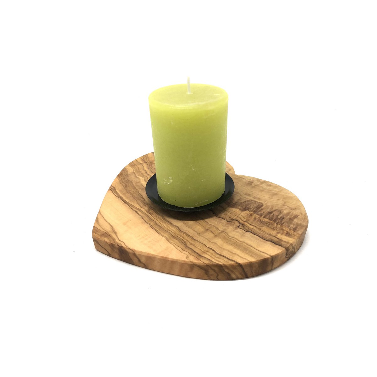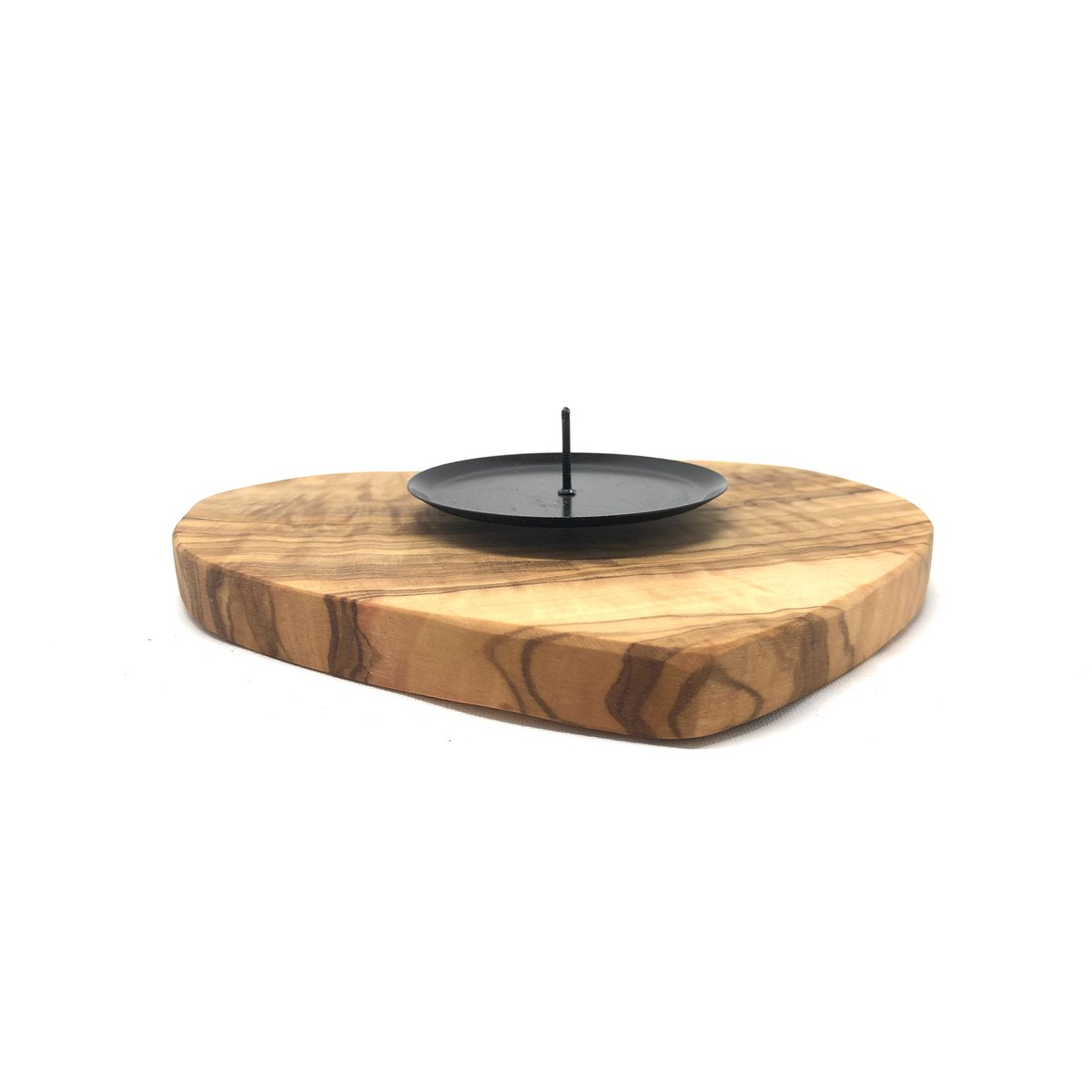 Kerzenhalter auf Sockel als Herz aus Olivenholz