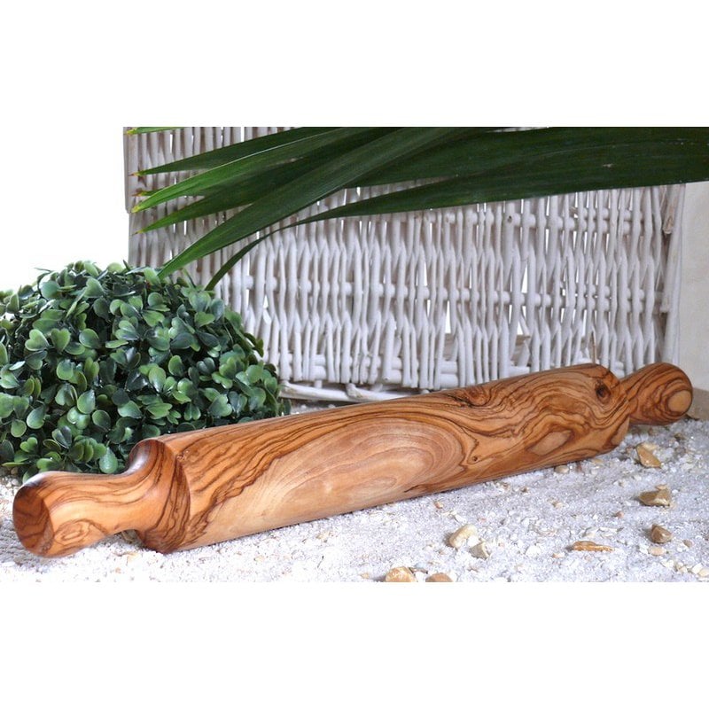 Teigroller (Nudelholz) mit Griffen aus Olivenholz. Ein Stück Natur in der Küche! Dieses - aus einem Stück gefertigte – Nudelholz, mit seiner sehr glatten und feinporigen Oberfläche, vermindert das Anhaften des Teiges. Es ist mit Olivenöl behandelt und sehr unempfindlich für den täglichen Gebrauch. Maße/Größe/Gewicht Länge ca. 40 cm Durchmesser ca. 4 cm