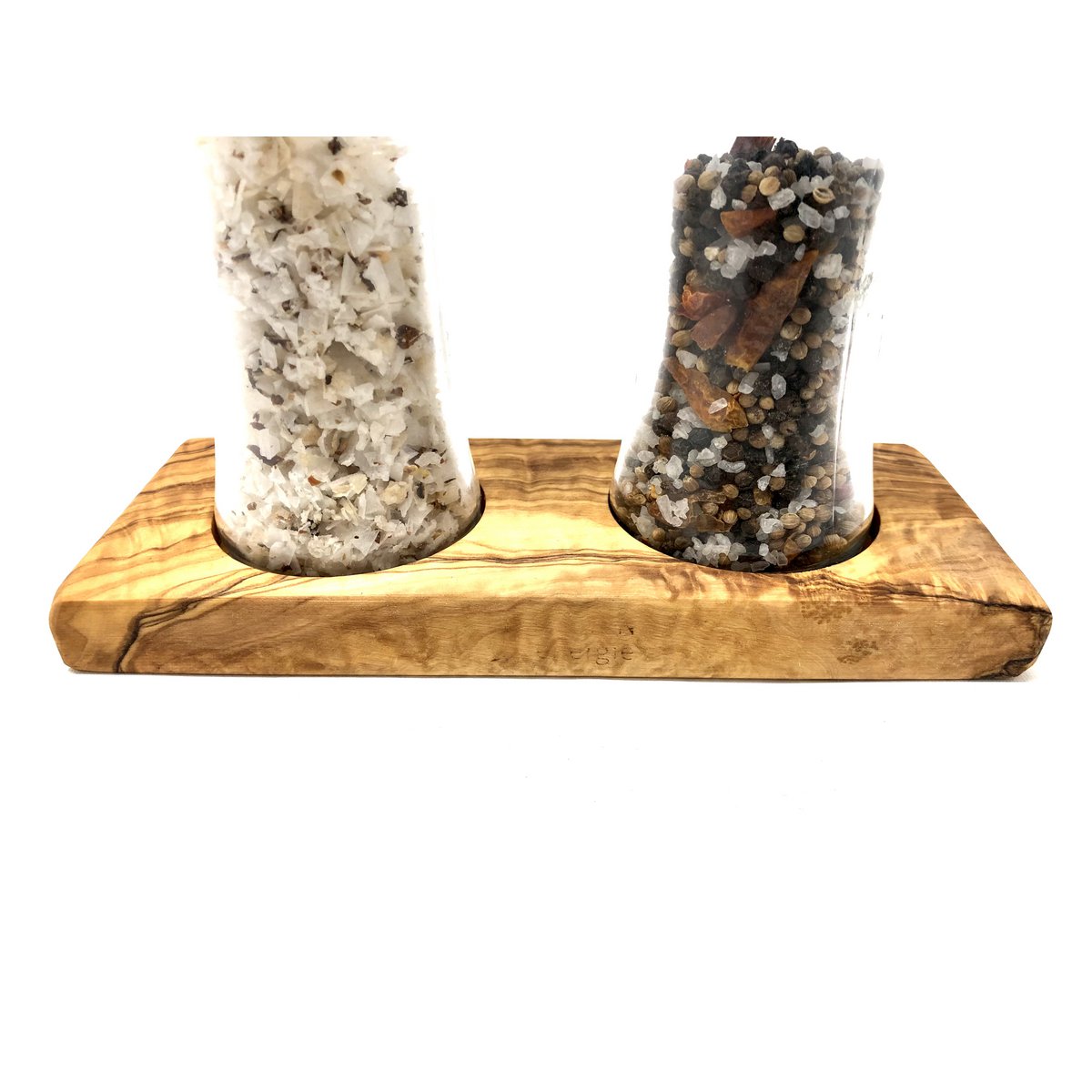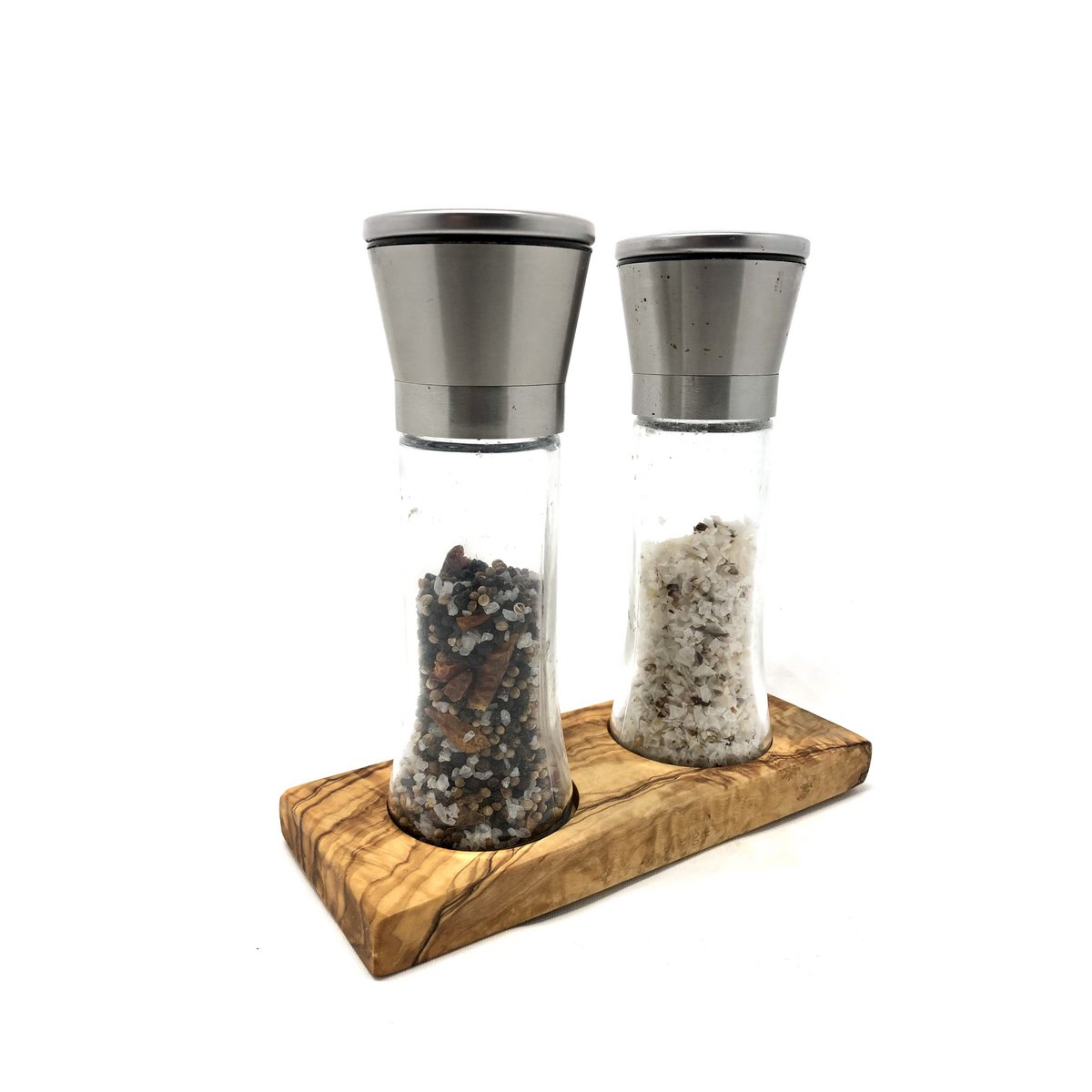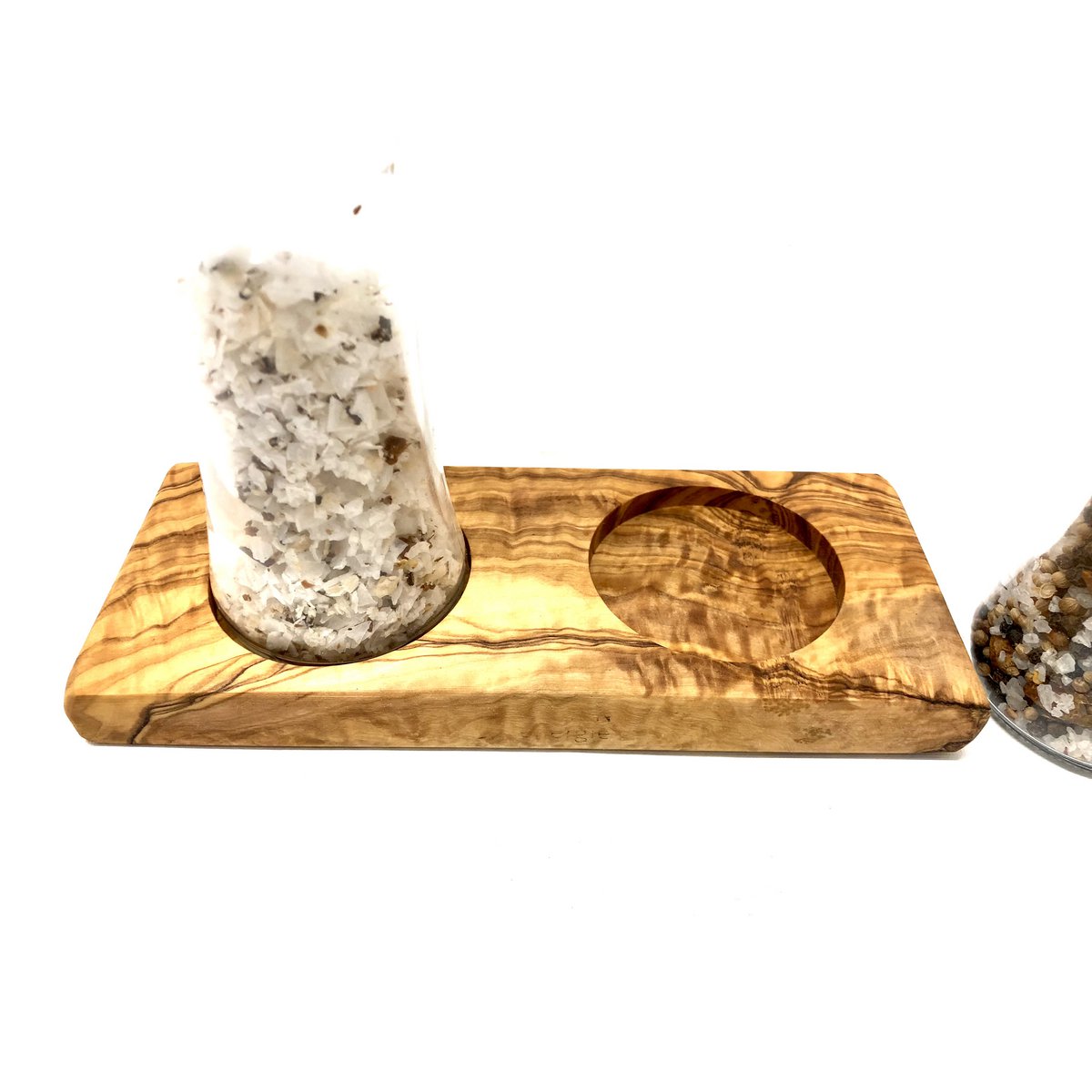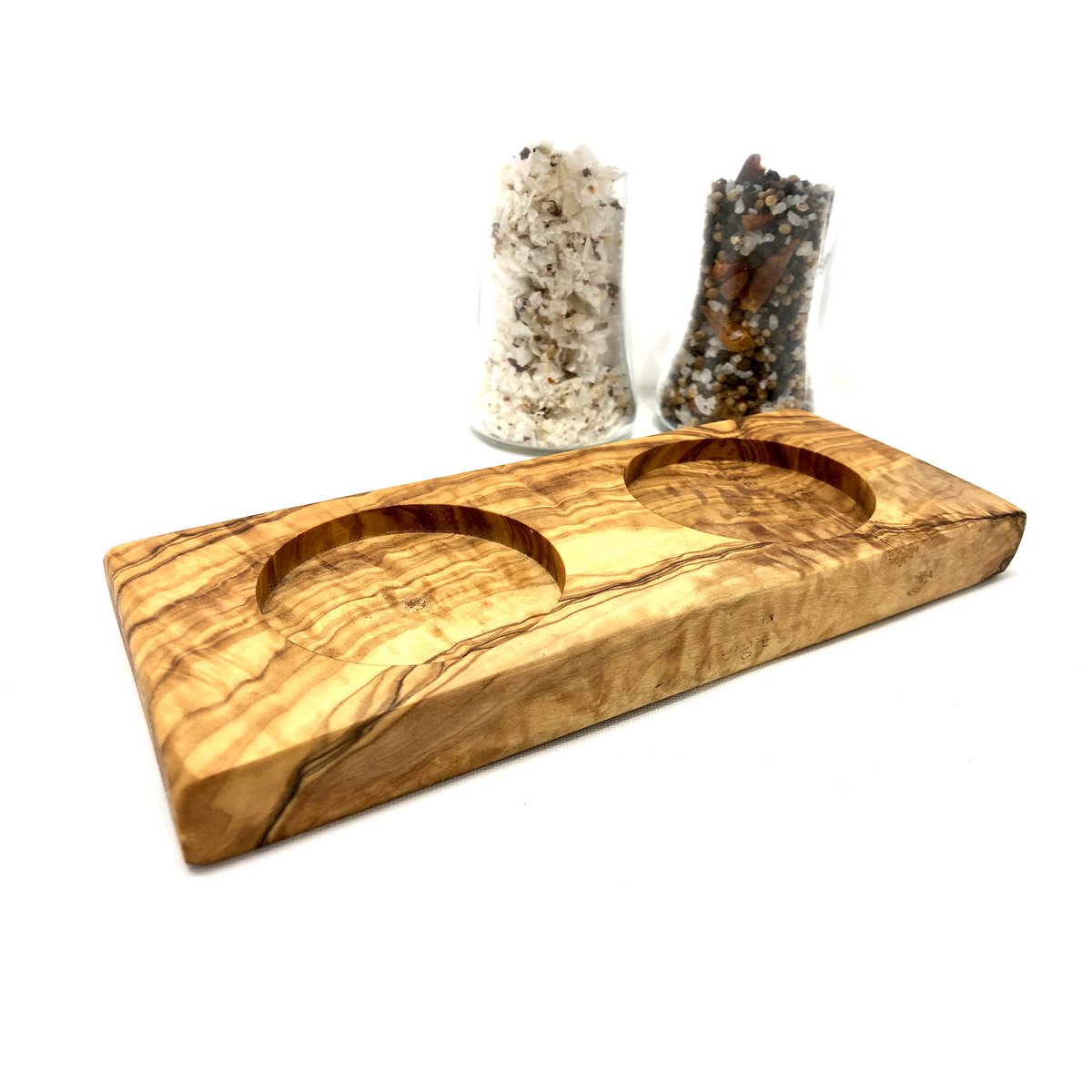 Damit Pfefferkrümel und Salzkristalle nicht mehr auf der Arbeitsplatte liegen. Ein Sockel mit Einfräsung für deine Salz- und Pfeffermühle.