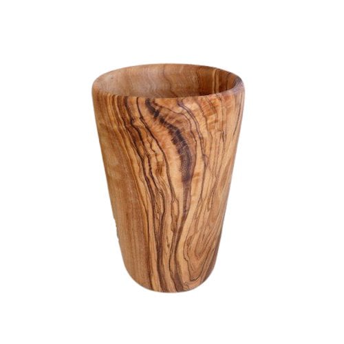 Zahnputzbecher groß aus Olivenholz. Nach dem Essen Zähne spülen... Eine wunderschön gemaserte Variante und sehr passend zu anderen Badezimmerutensilien aus Olivenholz in unserem Shop. Dieser Becher lässt sich danach auch hervorragend zur Aufbewahrung der Zahnbürste nutzen. Natürlich sind den Einsatzgebieten keine Grenzen gesetzt. Zum Beispiel als Trinkbecher oder auch als Stiftehalter...Dekorationsartikel sind nicht im Lieferumfang enthalten.Die Pflege ist einfach: Unter fließend Wasser säubern und ab und zu mit etwas Olivenöl einreiben, dann behält das Olivenholz seine Wärme und die kraftvolle Maserung. Maße/Größe/Gewicht Durchmesser ca. 7 cm Höhe ca. 10 cm