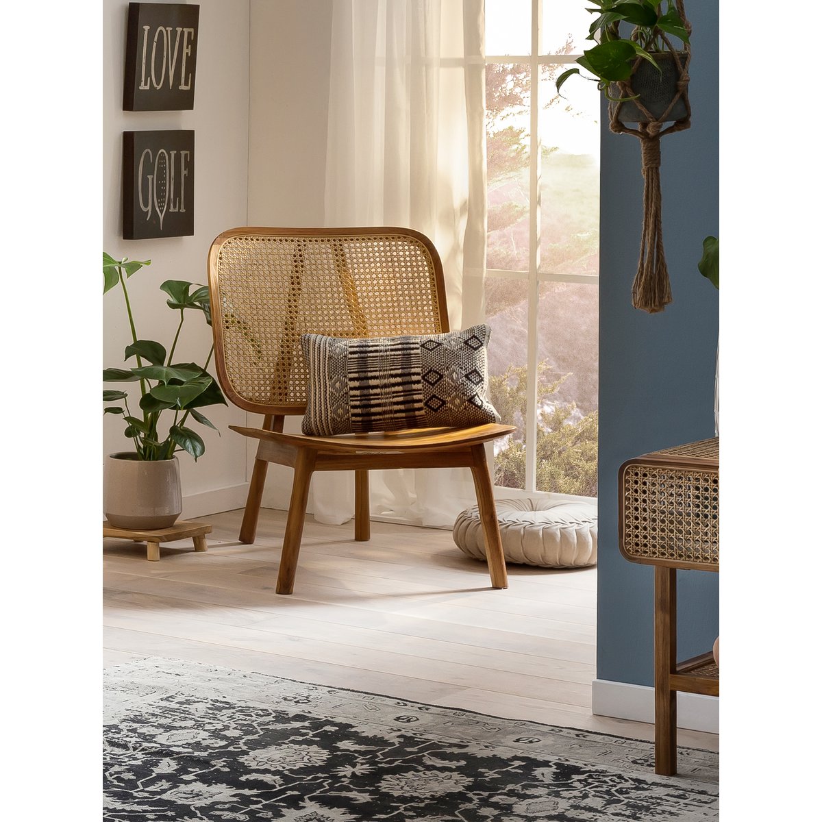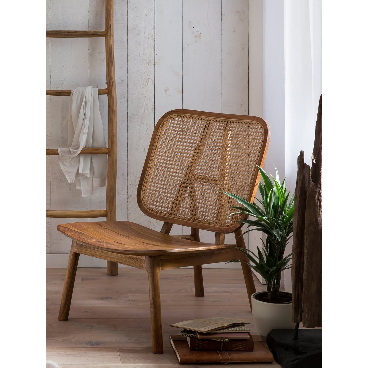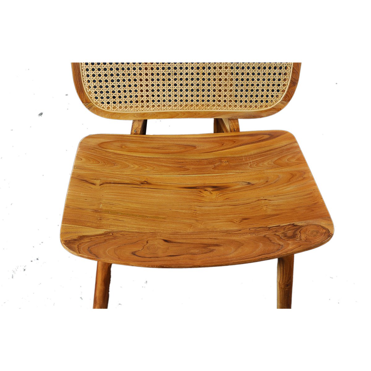 Das von sich aus schon edle Holz Teak, gestaltet mit einem Wiener Geflecht aus Peddigrohr im Rückenteil, ergibt einen wunderschönen Stuhl in der Farbe der Natur. Der Stuhl, welcher einem Kaffeehausstuhl gleicht, ist handgefertigt und passt sich dank seines warmen und exotischen Charmes jeden Wohnbereich an. Kombiniert zu Factory Design oder Vintage, antik und rustikal, diese Sitzgelegenheit passt immer. Dekoriert mit einem hübschen Kissen als Einzelstuhl im Gästezimmer oder Schlafzimmer. Im Esszimmer und Wohnbereich bietet er einen bequemen Sitzplatz für Ihre Gäste. In großen Dielen oder Fluren, auf der Terrasse oder im Wintergarten bietet dieser Stuhl mit seiner wunderschönen naturbelassenen Optik einen Platz zum Ausruhen. Sitzhöhe 40 cm, Sitztiefe 47 cm, Sitzbreite 64 cm.