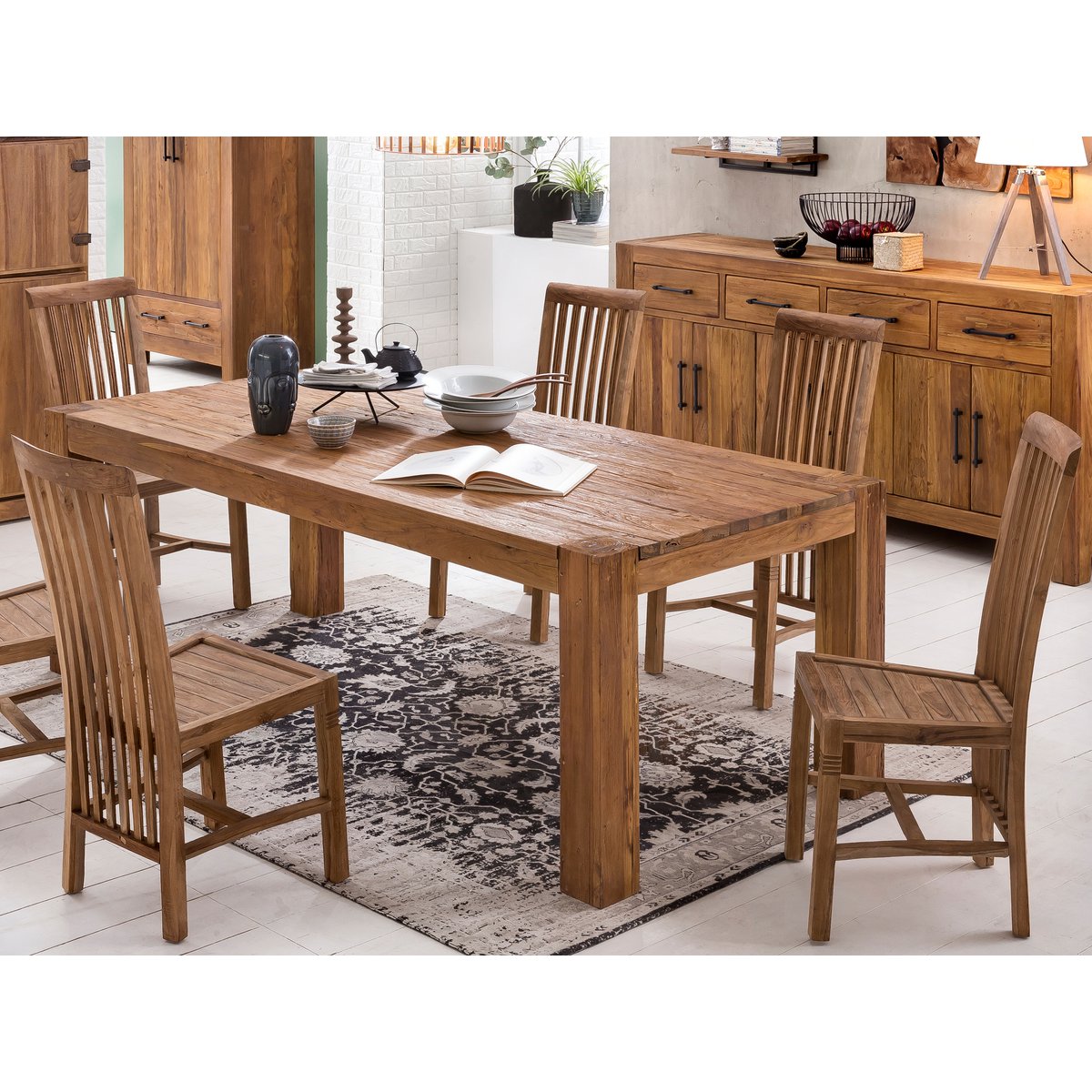 Recyceltes Teak schon die Umwelt und ist einfach schöner! Zu dieser Aussage stehen wir fest. Diesen einzigartigen Ausdruck des Holzes erreicht man nicht durch Maschinen und Technik, denn hier sehen Sie ein Naturmaterial, welches über Jahrzehnte ein Gesicht gewonnen hat. Es sticht wohltuend aus der Menge hervor, fühlt sich angenehm warm an und braucht keine Pflege, nur Achtsamkeit... Dekoriert mit einem hübschen Kissen im Esszimmer bietet dieser Stuhl einen bequemen Sitzplatz für Sie und Ihre Gäste. Als Einzelstuhl im Gästezimmer oder Schlafzimmer oder in großen Dielen oder Fluren, auf der Terrasse oder im Wintergarten bietet dieser Holzstuhl mit seiner wunderschönen naturbelassenen Optik einen Platz zum Ausruhen. Sitzhöhe 47 cm.
