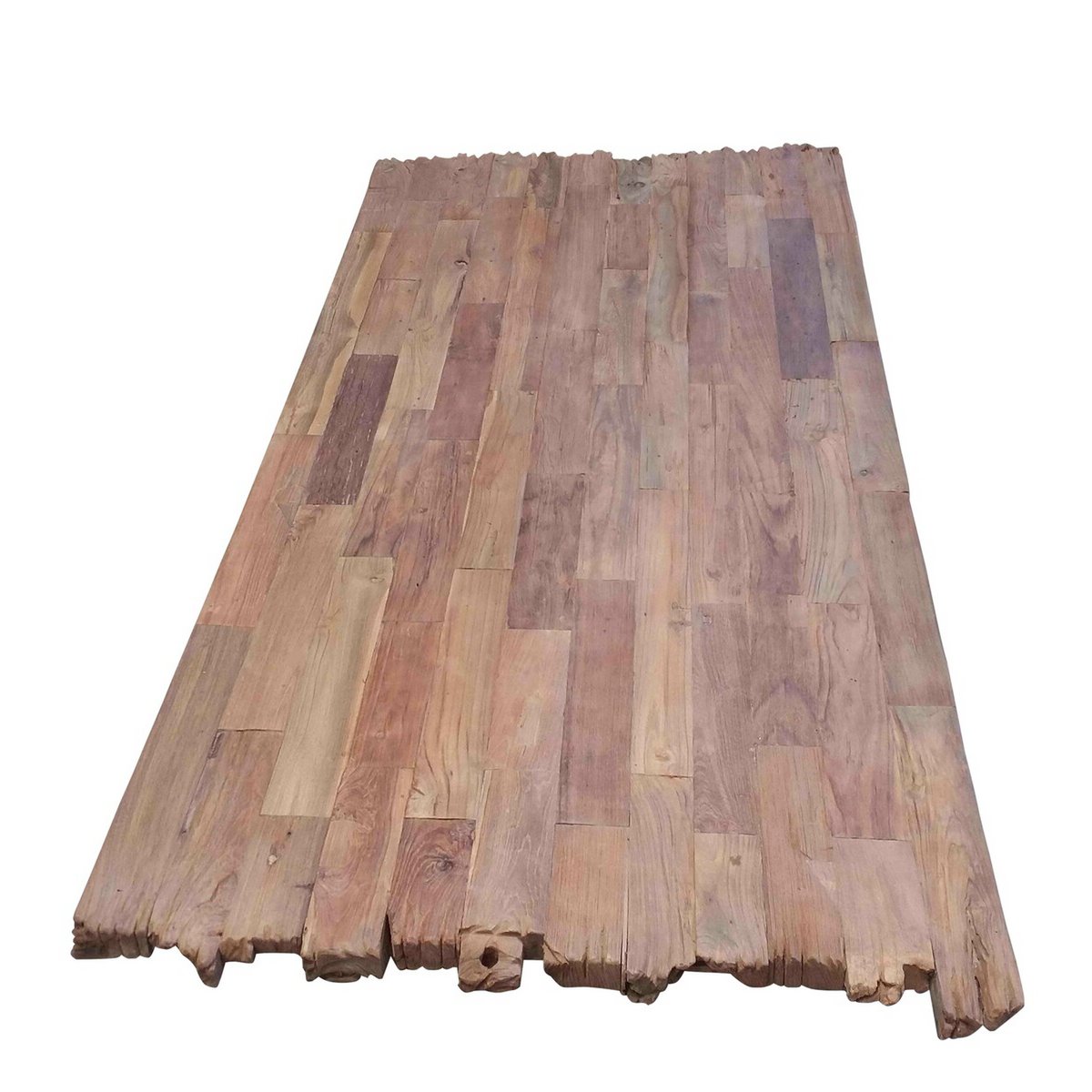 Mit dieser Tischplatte aus recyceltem Teak-Holz erwerben Sie die Möglichkeit einen Treffpunkt in Ihren Räumlichkeiten zu schaffen, der jedem Sofa den Rang ablaufen wird. Familie, Freunde, Gaumenschmaus, vielleicht sogar Home-Office - Sie können sich selbst am besten ausmalen, wie hier der Alltag künftig aussehen wird. Jede Tischplatte ist einzigartig und Ausdruck von Individualität und Natürlichkeit. Und mit ein bisschen Pflege und Achtsamkeit werden Sie einen Freund fürs Leben haben. Ein besonderes Highlight sind die gewollten Bruchkanten an den kurzen Seiten. Aufgedoppelt auf 50 mm, mit Bruchkante an den kurzen Seiten.