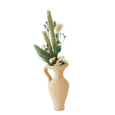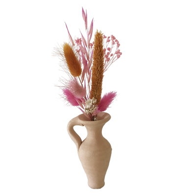 Chardonnay-Terrakotta-Vase mit Blumenstrauß, 18 cm