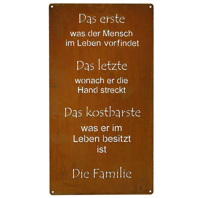 Rost Spruchtafel "Familie" Edelrost Metalldeko Tafel zum Hängen