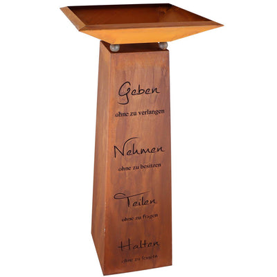 Deko Blumensäule mit Spruch: Geben, Nehmen ... und Pflanzschale | Edelrost Gartendeko | verschiedene Varianten |