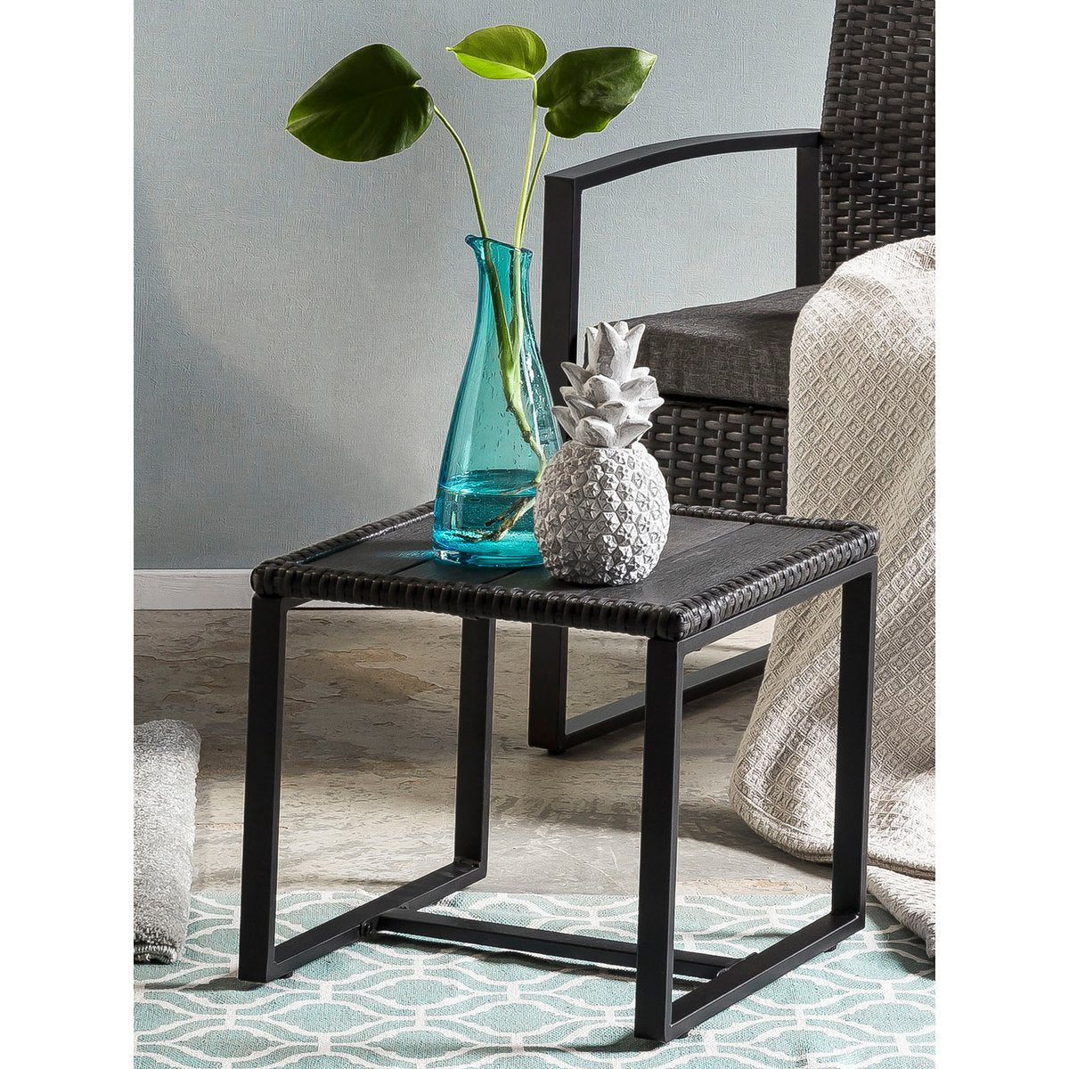 Materialien: Rattan, Metall, Glas