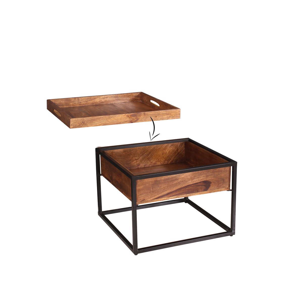 Sie möchten Ihre Wohnlandschaft mit einem Couchtisch aufwerten, der auch noch einen Extranutzen bietet? Das sollte Ihnen mit diesem Modell leicht gelingen, denn das Design ist zeitlos schön und das abnehmbare Tablett, sowie der darunter befindliche Stauraum, sind auch noch zusätzliche Eigenschaften, die im Alltag nicht ganz unbedeutend sind. So können Sie z.B. Zeitungen, Bücher oder andere kleine diverse Dinge in dem Stauraum verschwinden lassen, während auf dem Tablett eine Blume oder andere Deko-Elemente Ihren Wohnraum verschönen. Abnehmbares Tablett, Innenmaß des Tabletts 52x52x5 cm, Innenmaß des Stauraums 52x52x13,5 cm.