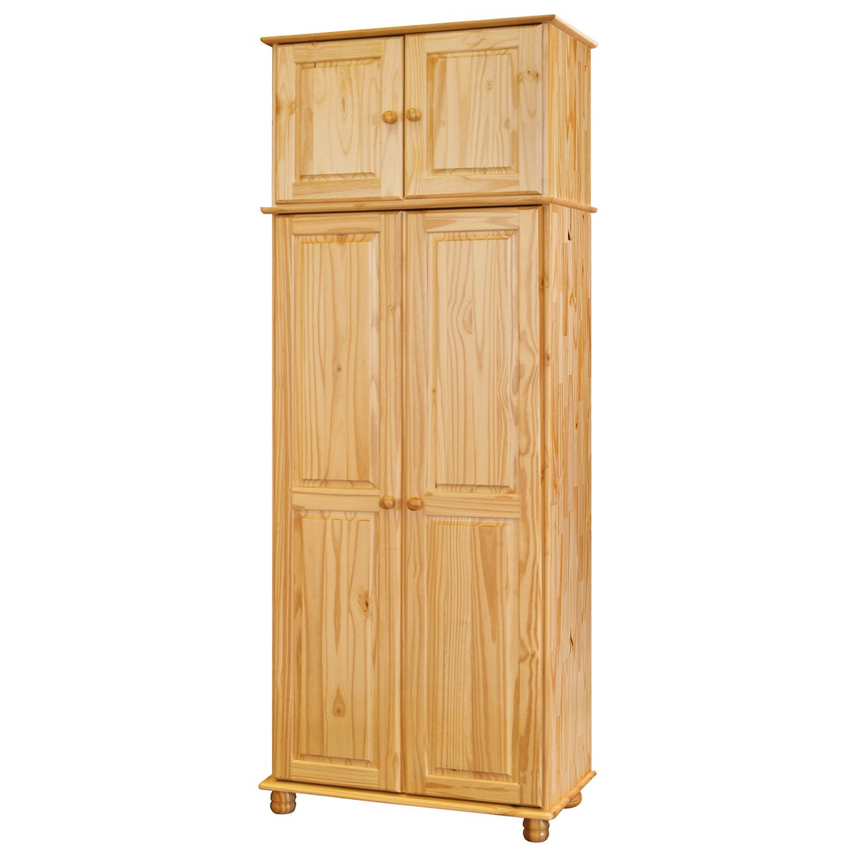 Möchten Sie Ihren vorhandenen Kleiderschrank erweitern und zusätzlichen Stauraum schaffen? Unser Schrankaufsatz aus massivem Kiefernholz ist die ideale Lösung und eine stilvolle Ergänzung für die Modelle 19020010 und 19020011. Mit zwei Türen bietet dieser Schrankaufsatz nicht nur zusätzlichen Stauraum, sondern auch eine praktische Organisation Ihrer Kleidung und Accessoires. Die Türen passen nahtlos zu den genannten Kleiderschränken, sodass Sie Ihr Schlafzimmer stilvoll erweitern können. Gefertigt aus hochwertigem Kiefernholz und natur lackiert, besticht dieser Schrankaufsatz durch seine natürliche Schönheit und Robustheit. Die lackierte Oberfläche schützt das Holz vor Abnutzung und verleiht ihm einen eleganten Glanz, der Ihren Raum aufwertet. passend für die Modelle 19000-68 + 19000-69