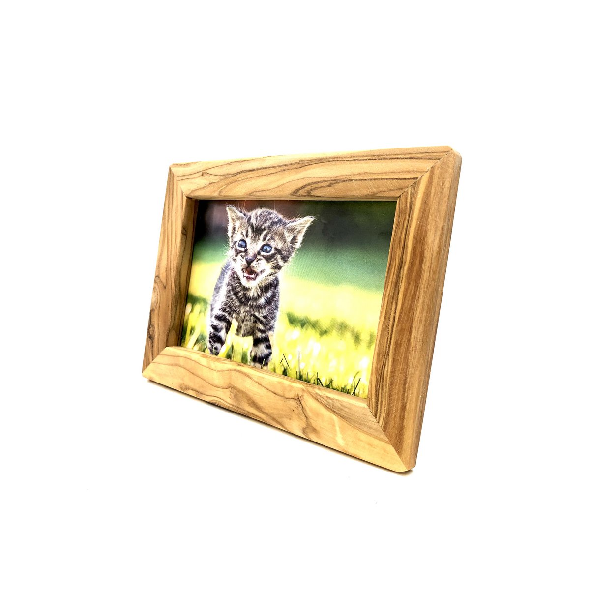 Ein indiviudeller Bilderrahmen aus Olivenholz (ohne Glas). Der Bilderrahmen kann durch den magnetischen Fuß sowohl auf der langen Seite als auch auf der kurzen Seite aufgestellt werden. Es ist alles vorbereitet. Du wirst über das einfache Handling überrascht sein! Passend für Fotos mit den Maßen 10 x 15 cm. Der Bildausschnitt im Rahmen ist etwas kleiner (ca. 8,5 x 13 cm), damit das Foto überlappend befestigt werden kann.