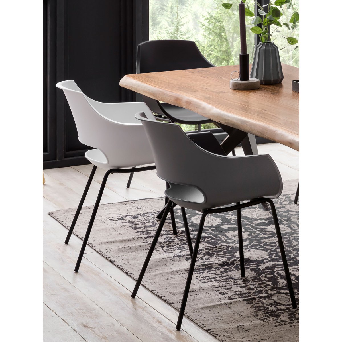 Dieser Schalenstuhl wirkt durch seine robuste Sitzschale und sein schwarzes Gestell aus Metall sehr edel und bietet einen hervorragenden Sitzkomfort. Die zeitlose Form passt sich jeden Wohnbereich an. Kombiniert zu Factory Design oder Vintage, Shabby und sogar antik, der Stuhl passt sich ausgezeichnet an. Holen Sie sich mit diesem Stuhl-Set einen Eyecatcher in Ihr Zuhause. Die Rückenlehne ist mit einem modernen Cut Out ausgestattet. Als Sitzgelegenheit kann er auch als Einzelstuhl im Gästezimmer Verwendung finden. Im Wohnbereich oder Esszimmer bietet der Stuhl einen bequemen Sitzplatz für Ihre Gäste. Geeignet für Konferenzräume und Kanzleien als Konferenzstuhl, in Praxen wird das Wartezimmer mit diesem Besucherstuhl zum Wohlfühlort. Die Einsatzmöglichkeiten dieser Sitzgelegenheit sind nahezu grenzenlos. Bitte beachten Sie mögliche leichte Farbabweichungen zur Darstellung auf Ihrem Bildschirm. Sitzhöhe 45,5 cm, Sitztiefe 44 cm, Sitzbreite 40 cm.