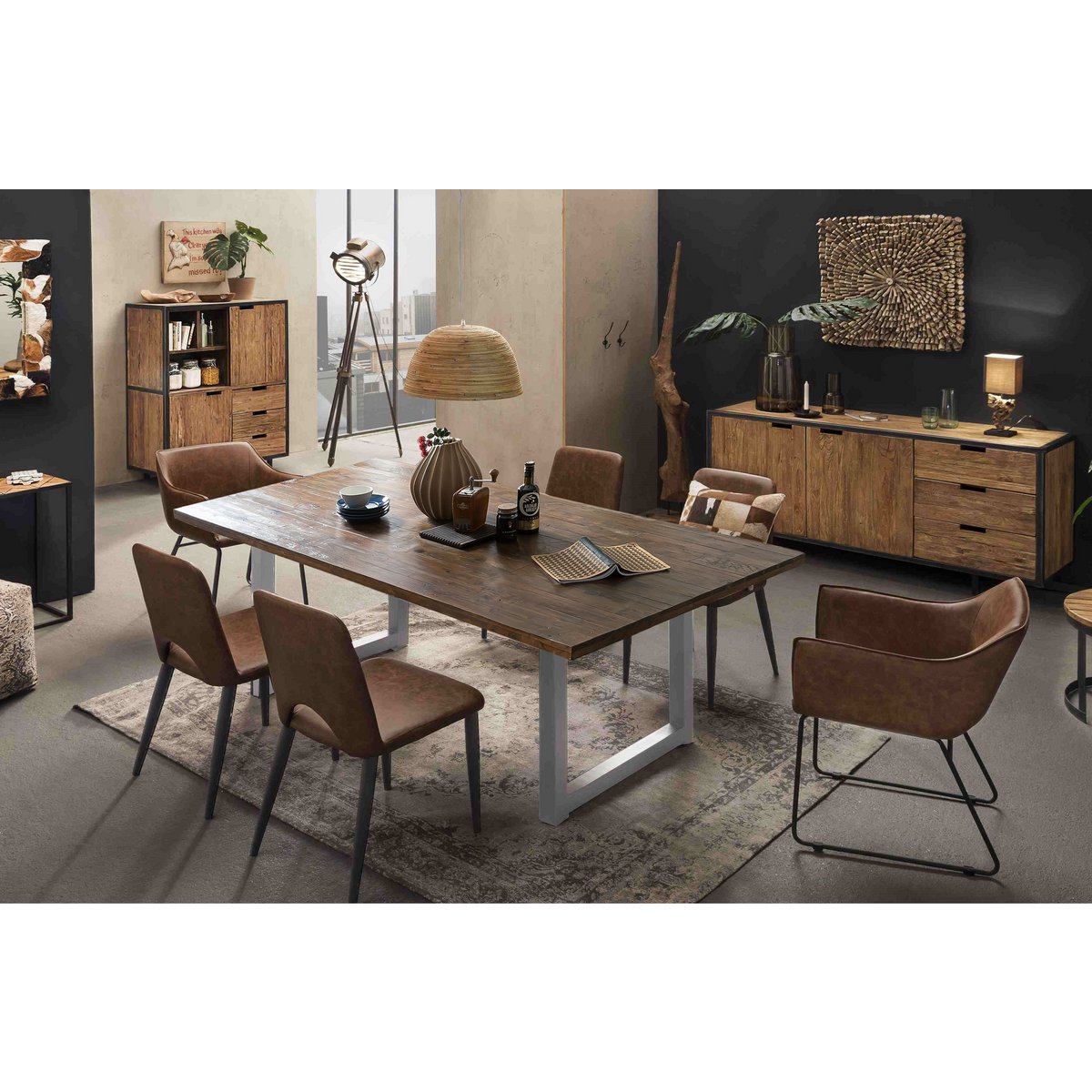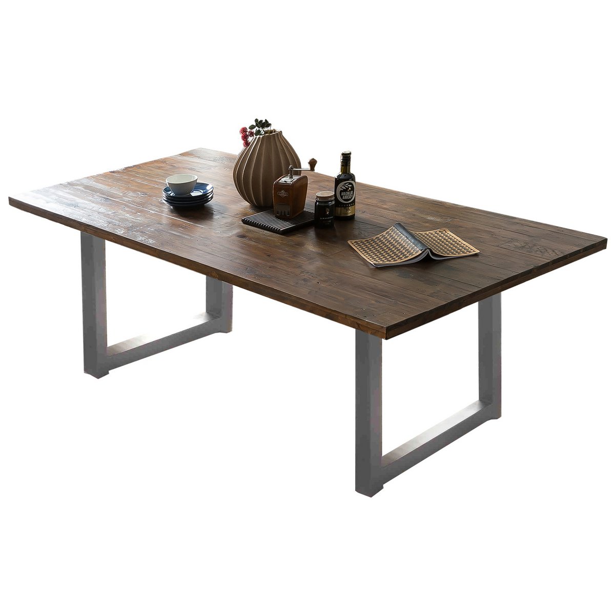 Das Tischgestell aus Stahl in der Form U-Fuß der Farbe antiksilber ist konzipiert für Tischplatten von einer Länge von 160 cm bis 240 cm und einer Breite von mindestens 85 cm. Die Auflagenstrebe des Gestells hat eine Länge von 75 cm. Mit der passenden Holzplatte verwandelt sich der Baukasten im Esszimmer mit den passenden Stühlen in einen Esszimmertisch, im Hotel in einen Frühstückstisch oder in einen Konferenztisch. In der Gastrobranche lässt sich in schon vorhandenes Mobiliar mit diesem Gestell und einer Platte Ihrer Wahl der passende Restauranttisch zusammensetzen. Rohre 6x6 cm.