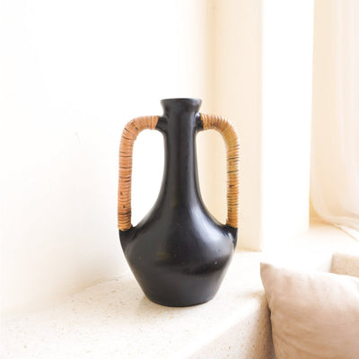 Vase Schwarz Kleine dekorative Vase handgegossen aus Ton für getrocknete oder frische Blumen SELAYAR