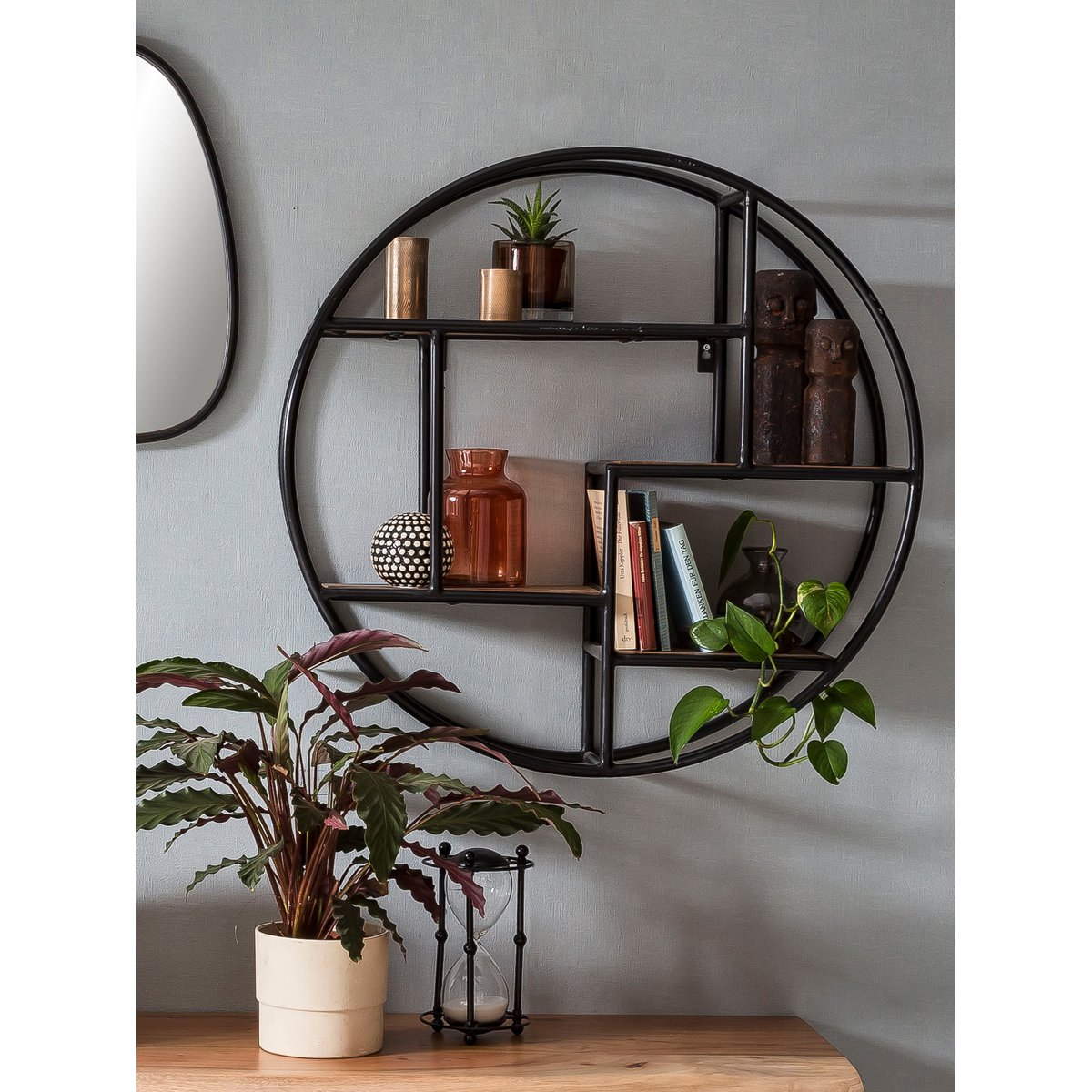 Dieses moderne Wandregal aus naturfarbenem Mangoholz mit einem antikschwarzen Altmetall-Rahmen können Sie ganz individuell gestaltet aufhängen. Somit können Sie Ihrer Kreativität freien Lauf lassen und Ihre Wände verschönern. Der Factory Style ist dabei ein absoluter Eyecatcher. Das Massivholzregal ist vielseitig einsetzbar und kann in den unterschiedlichsten Räumlichkeiten verwendet werden. Egal ob im Wohnzimmer, Esszimmer oder Diele – dieses Wandregal kommt überall optimal zur Geltung. mit 4 unterschiedlichen Ablageböden, Befestigung an der Wand mit 2 Schrauben, max. Belastbarkeit: ca. 15-18 KG.