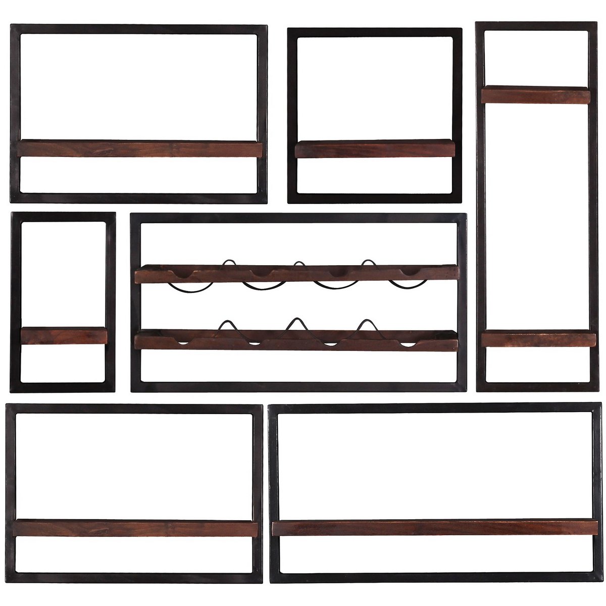 Mit diesem praktischen Weinregal können Sie 8 Weinflaschen gleichzeitig platzsparend und dekorativ an der Wand unterbringen. Die Kombination von mehreren Wandregalen erhöht die Kapazität und setzt der kreativen und individuellen Anordnung keine Grenzen. Das dunkel gebeizte, recycelte Altholz leistet einen Beitrag zum Umweltschutz und in Kombination mit edlen Weinflaschen zaubert es ein stilvolles und gemütliches Flair. platzsparend und dekorativ.