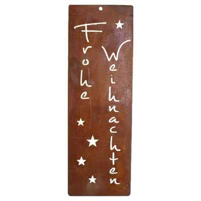 Anhänger FROHE WEIHNACHTEN aus rostigem Metall