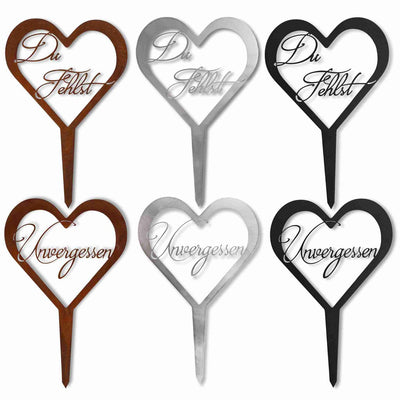 Herz Grabschmuck wetterfest aus Metall – Du fehlst & Unvergessen – Elegante Grabdekoration