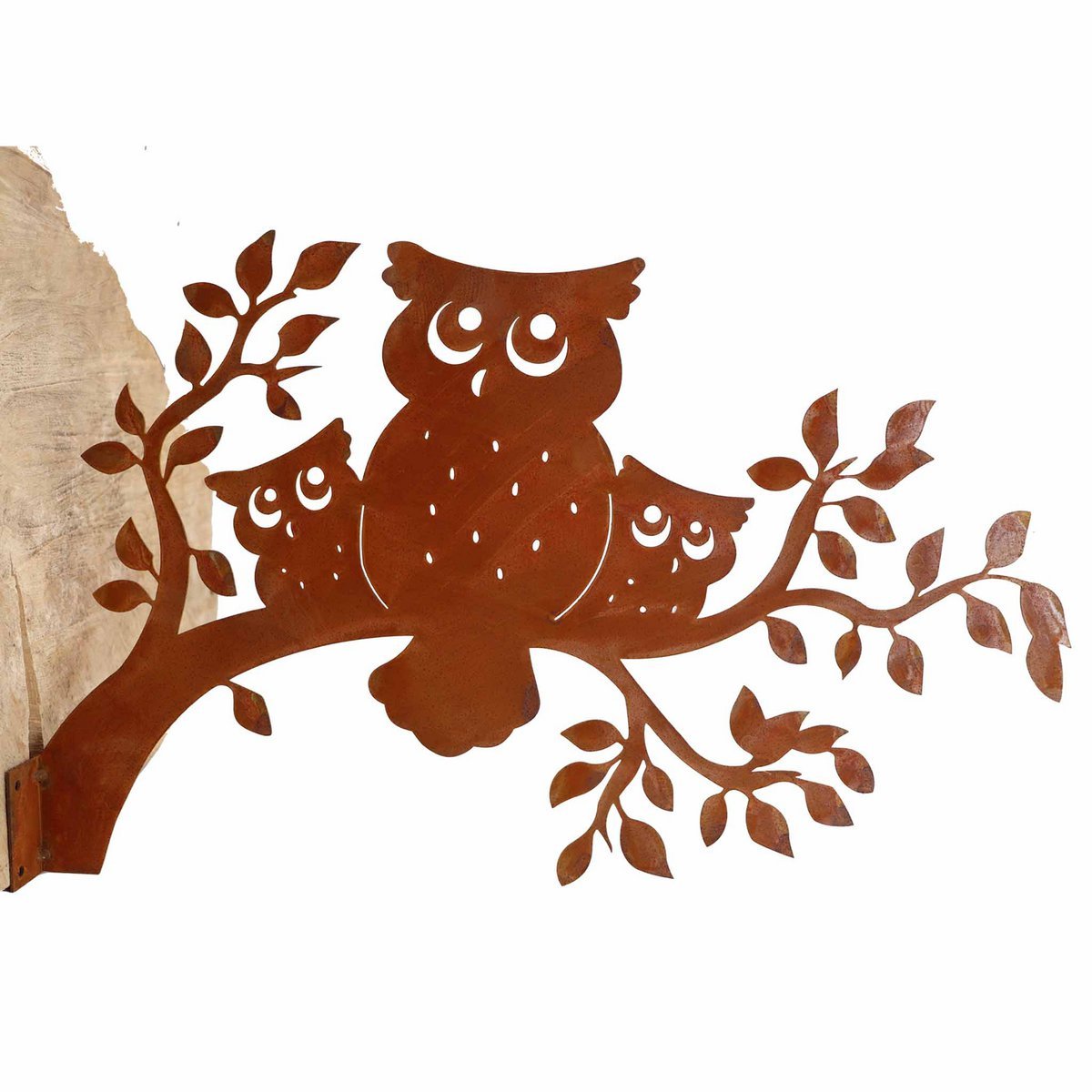 Edel Rost Garten Deko Eulen auf Ast | zum seitlich befestigen oder zum hängen