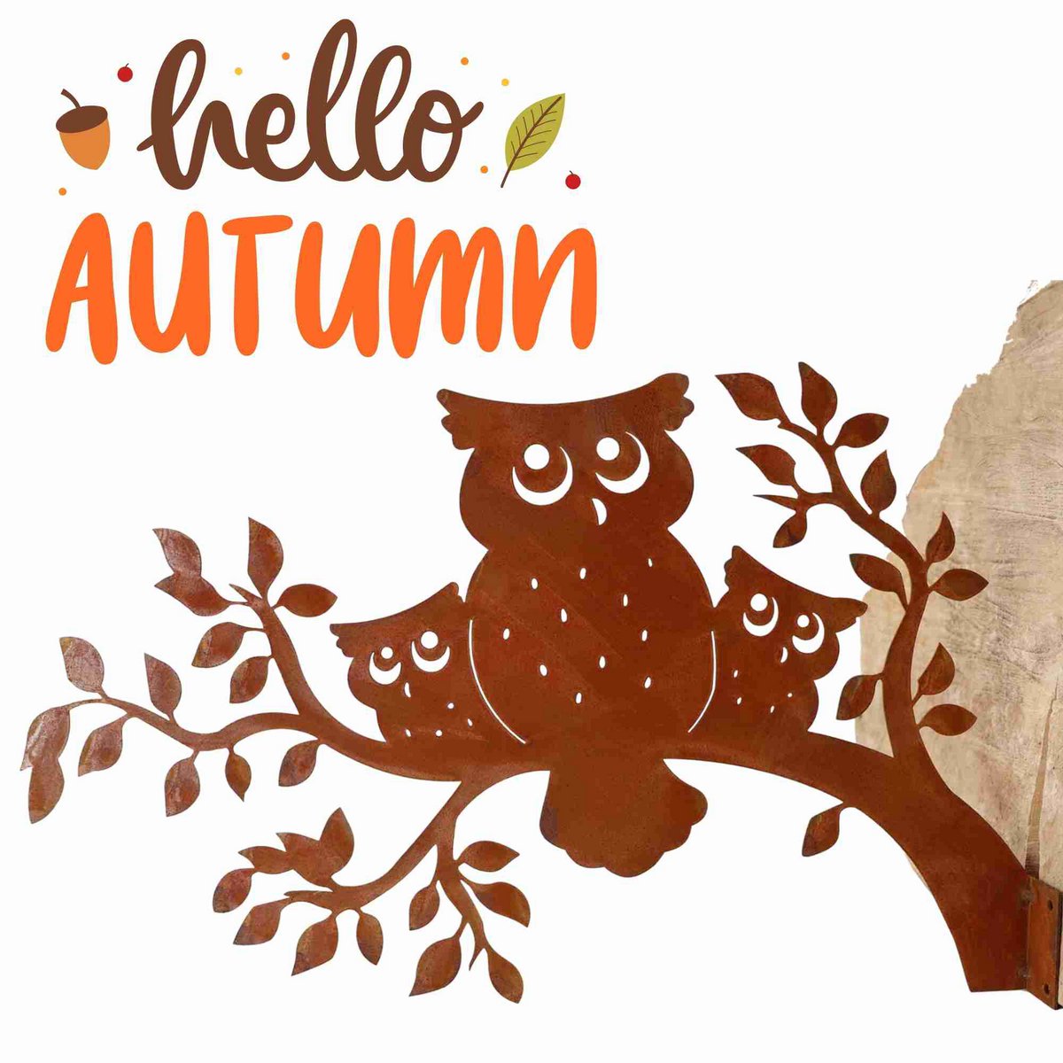 Rost Deko Eulen im Vintage Look als Hingucker in Ihrer Wohn- und Gartendeko für den Herbst Mit der niedlichen Rost Deko Eule Familie aus Metall holen Sie sich eine entzückende Herbstdekoration nach Hause. Gestalten Sie mit der Rost Deko Wohnzimmer, Terrasse oder Garten.➤ Herbstdeko für Ihr Zuhause: Die hübsche Metalldeko Rost Eule ist als Wohndeko und im Garten hübsch anzusehen. Wählen Sie aus zwei Varianten: zum hängen: Höhe: ca. 30 cm ✔ Breite: ca. 50 cm ✔ mit Lochbohrung zum Aufhängen ✔ zum seitlich befestigen: Höhe: ca. 30 cm ✔ Breite: ca. 50 cm ✔ mit 6 x 6 cm großer Halterung am Ast zum seitlich befestigen ✔ Vier Löcher mit Ø 5 mm, je 5 mm von den Ecken der Halterung entfernt ✔ Eigenschaften:In sorgfältiger Handarbeit werden die Deko Rost Garten Eulen aus Metall angefertigt. Durch ein natürliches Edelrost-Finish entstehen die einzigartigen Brauntöne aus echtem Rost. Ihre Vorteile bei uns: Bequem online bestellen. Geschenk Ideen für Vatertag, Muttertag, Geburtstag oder Hochzeit. Authentische deko eulen für draußen, eulen deko garten.